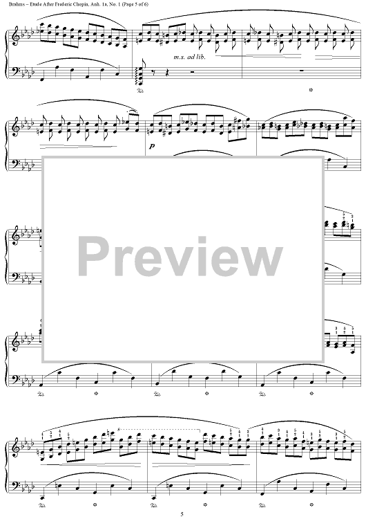 "No. 1: Etude After Frederic Chopin" Sheet Music by Johannes Brahms