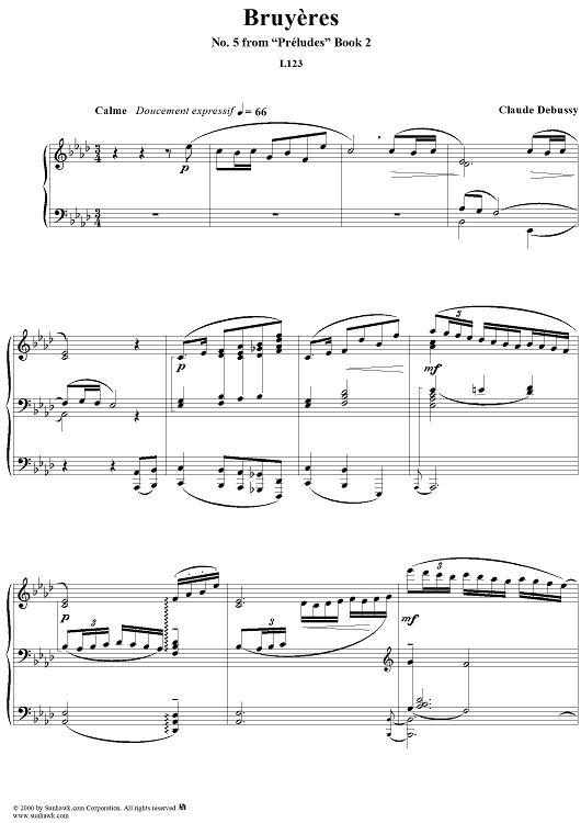 Digital Sheet Music for No. 5: Bruyères by Claude Debussy scored for Piano Solo; id:203725