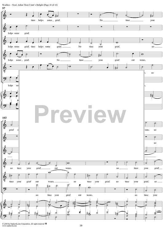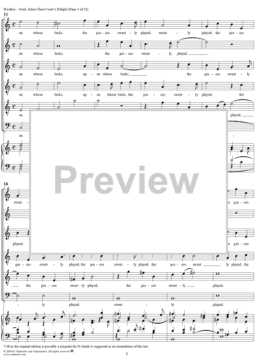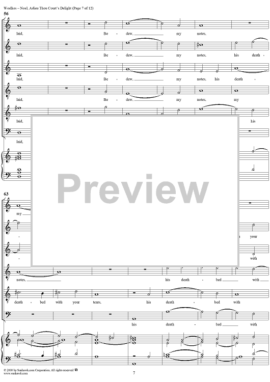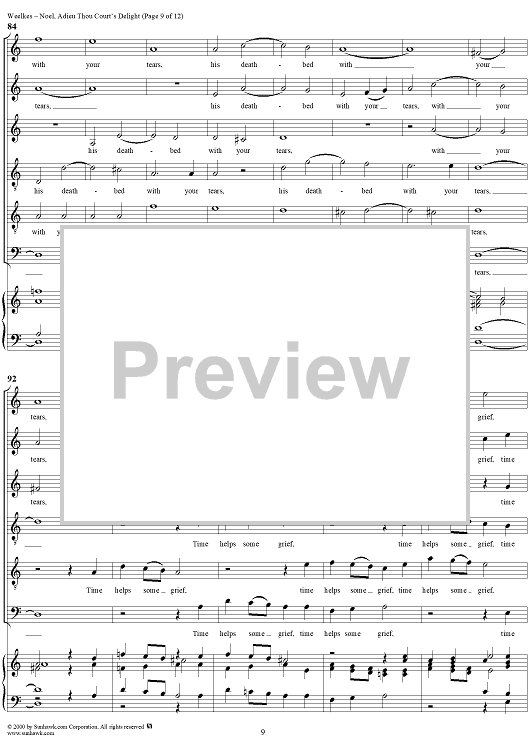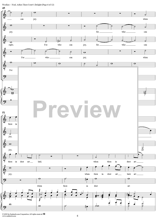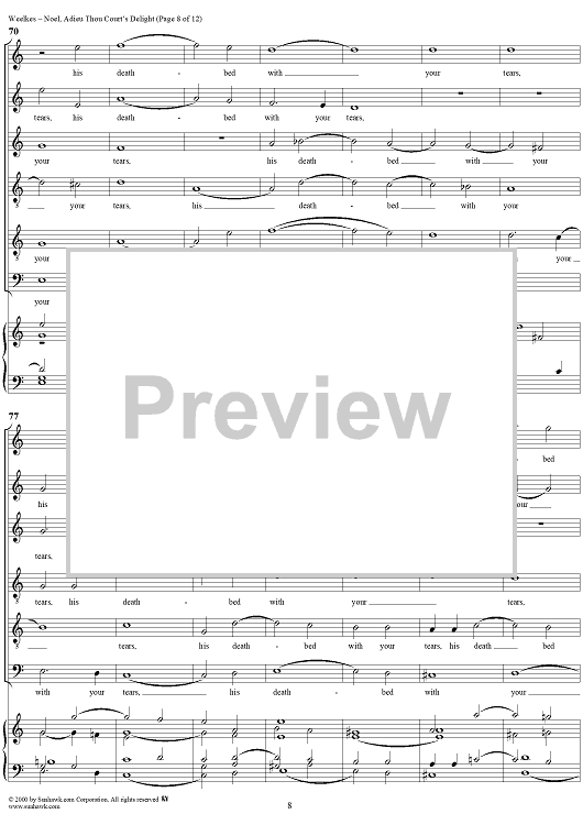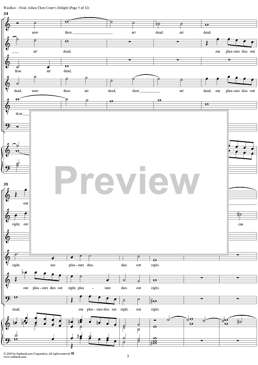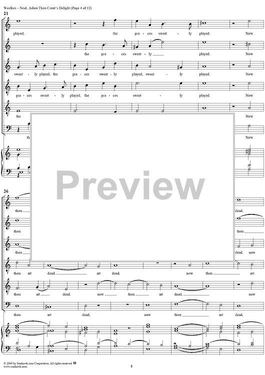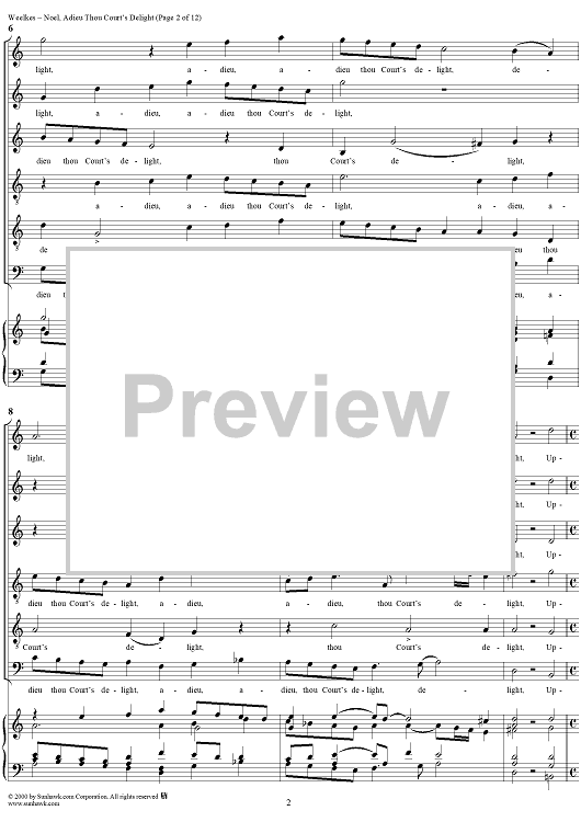 Digital Sheet Music for Noel, Adieu Thou Court's Delight by Thomas Weelkes scored for Six-part Mixed Chorus; id:263669