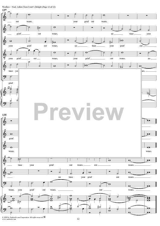 "Noel, Adieu Thou Court's Delight" Sheet Music by Thomas Weelkes