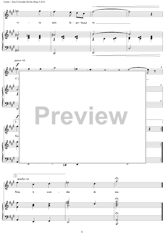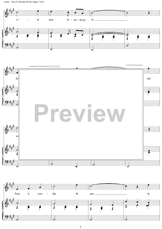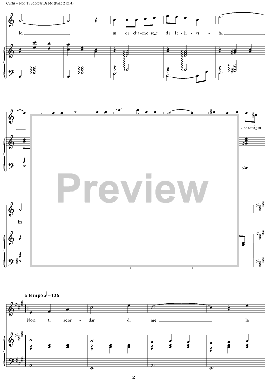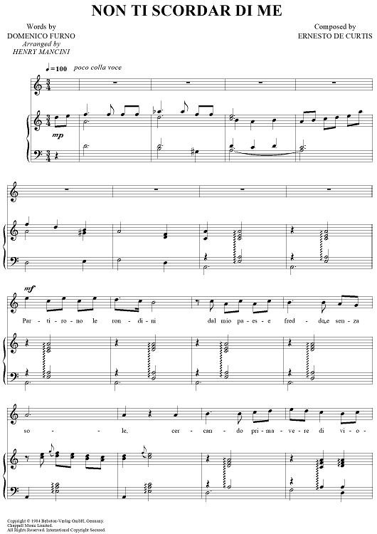 Digital Sheet Music for Non Ti Scordar Di Me by Henry Mancini, Luciano Pavarotti, Ernesto DeCurtis, Domenico Furno scored for Piano/Vocal/Chords; id:402205