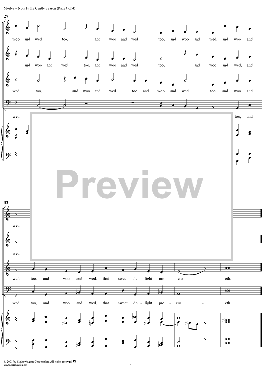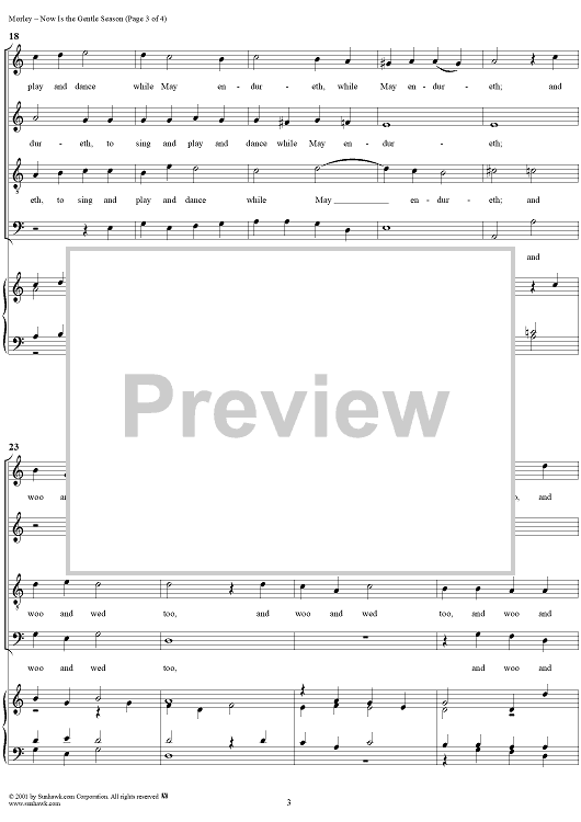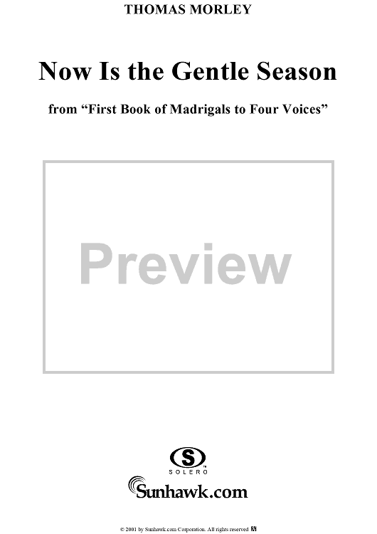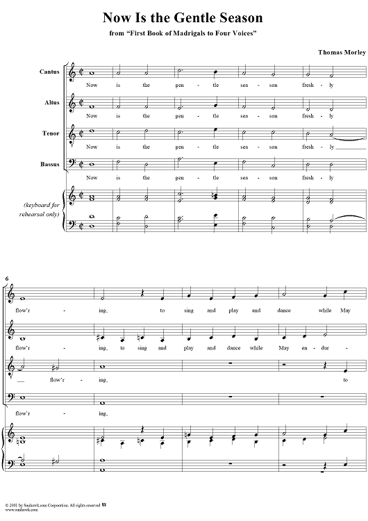 Digital Sheet Music for Now Is the Gentle Season by Thomas Morley scored for Four-part Mixed Chorus/Piano; id:260281