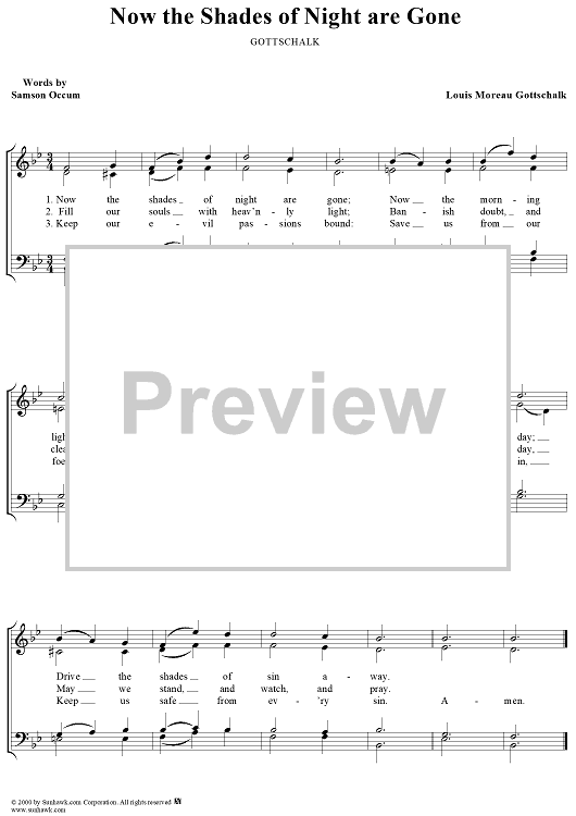 Digital Sheet Music for Now the Shades of Night are Gone by Louis Moreau Gottschalk scored for Four-part Mixed Chorus; id:263342
