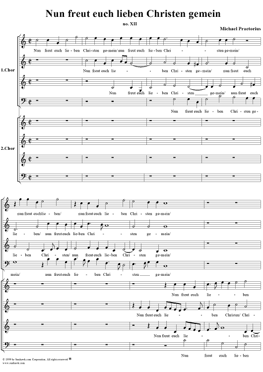 "Nun freut euch lieben Christen gemein" Sheet Music by Michael Praetorius