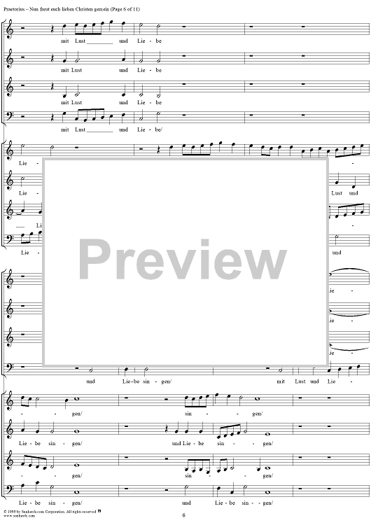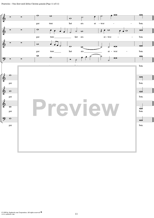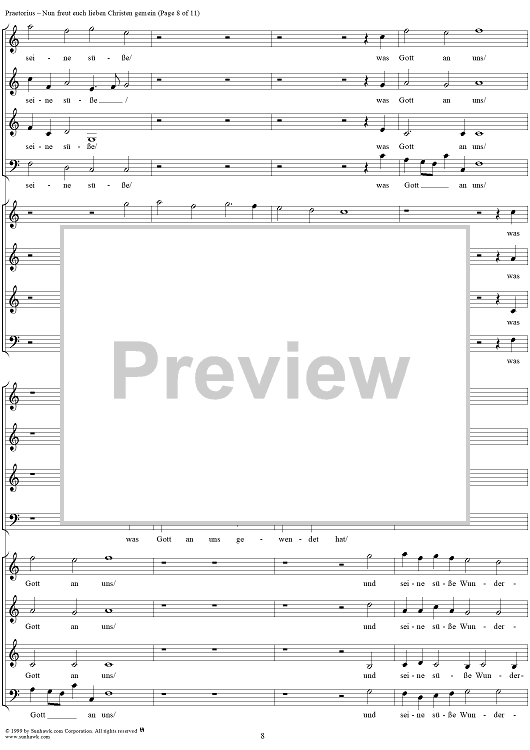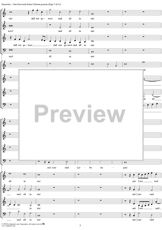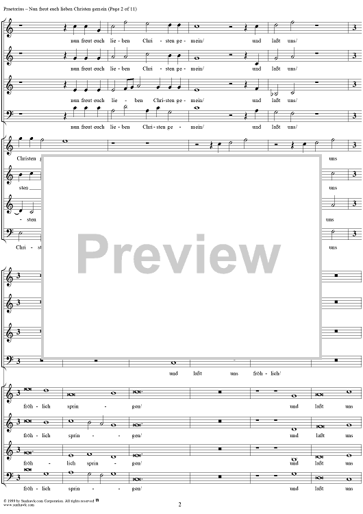 Digital Sheet Music for Nun freut euch lieben Christen gemein by Michael Praetorius scored for Mixed Chorus; id:254727