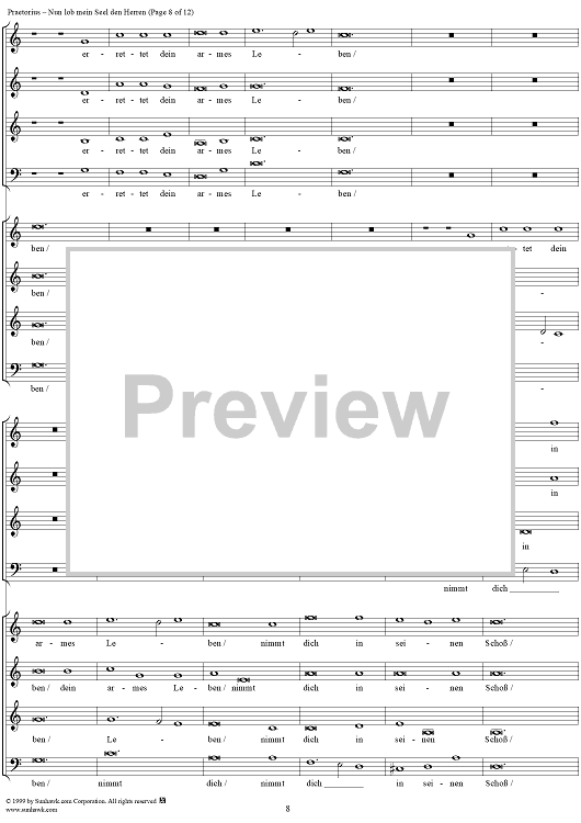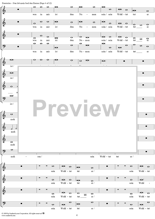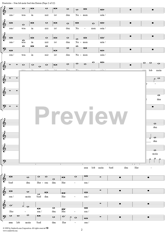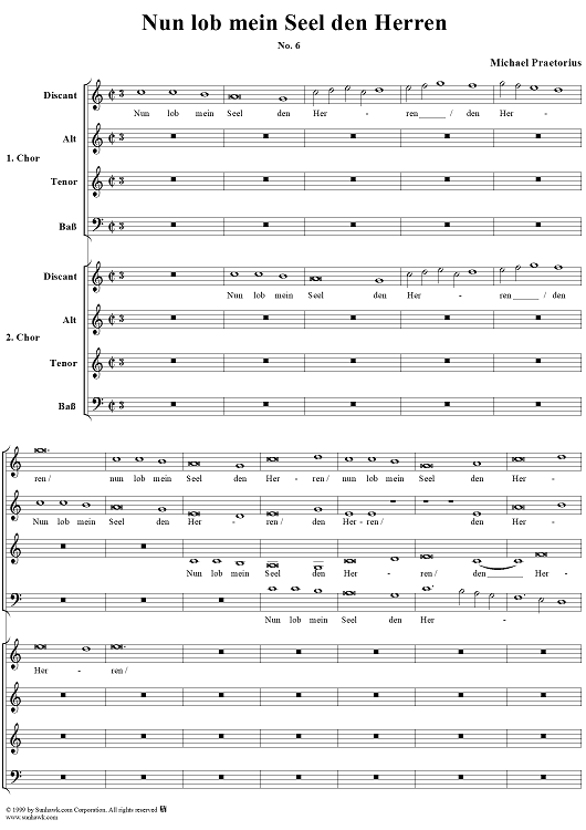 Digital Sheet Music for Nun lob mein Seel den Herren by Michael Praetorius scored for Mixed Chorus; id:254729