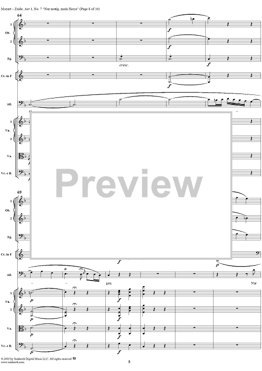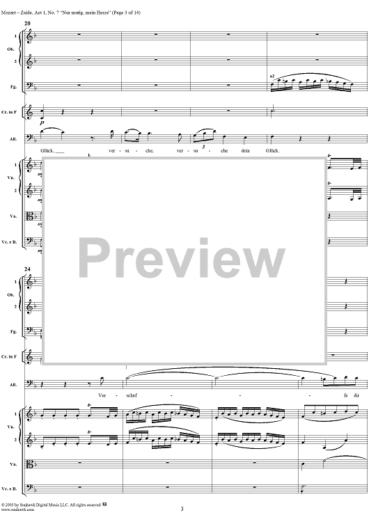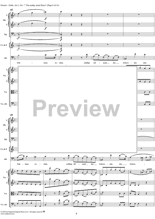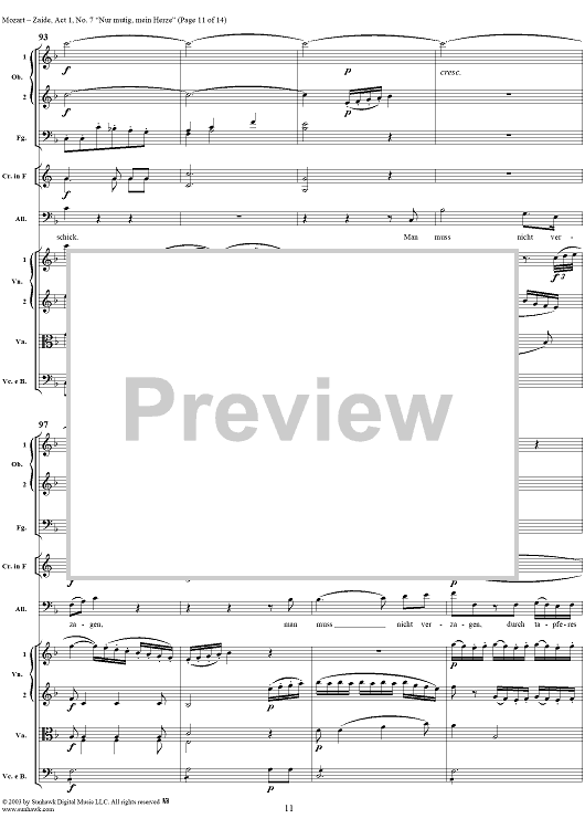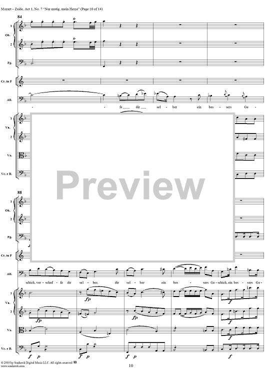 Digital Sheet Music for "Nur mutig, mein Herze", No. 7 from "Zaide", Act 1, K336b (K344) - Full Score by Wolfgang Amadeus Mozart scored for Voice and Orchestra; id:291673