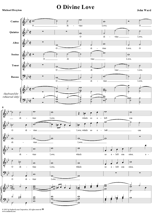 Digital Sheet Music for O Divine Love by John Ward, Michael Drayton scored for Mixed Chorus; id:249821