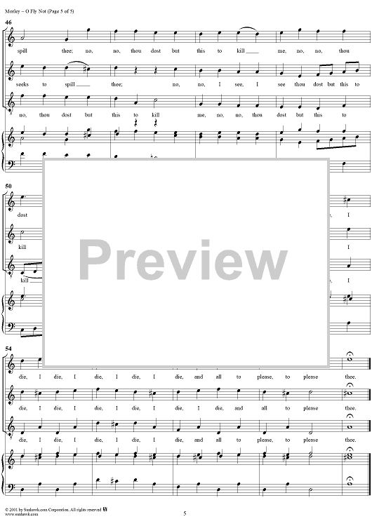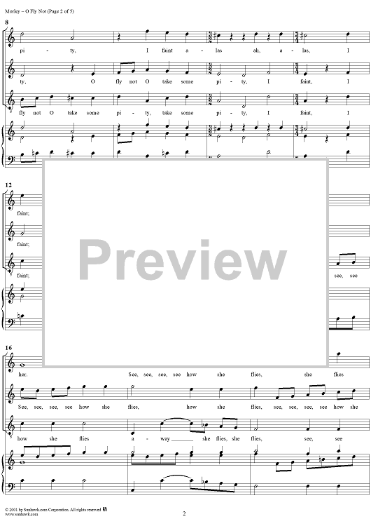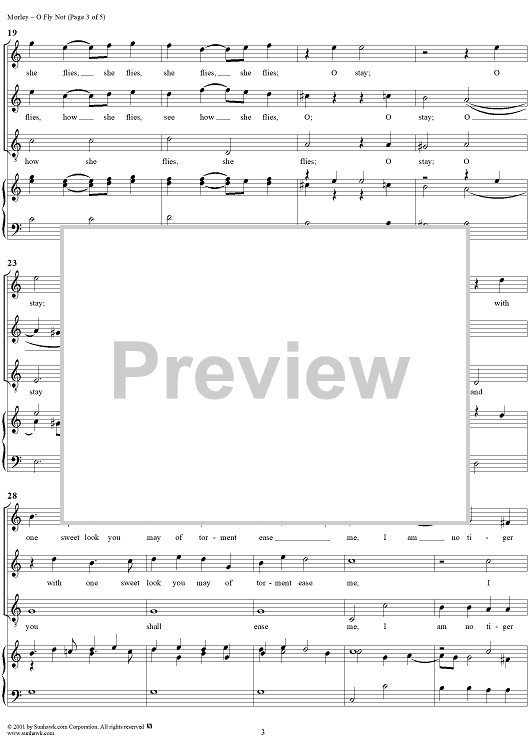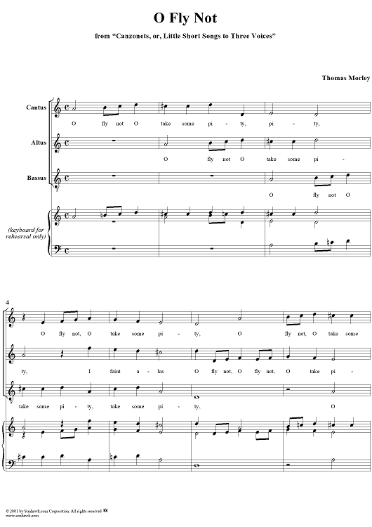 Digital Sheet Music for O Fly Not by Thomas Morley scored for Three-part Mixed Chorus; id:260137