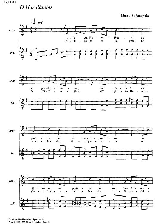 Digital Sheet Music for O Haralàmbis by , Marco Sofianopulo scored for Voice/Guitar; id:330513