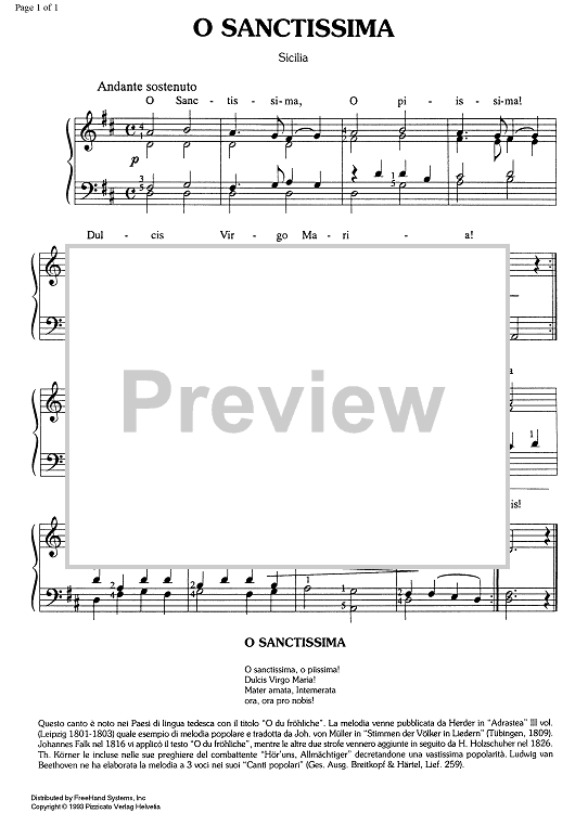 Digital Sheet Music for O Sanctissima by Enrico Battistoni, Traditional scored for Piano/Vocal; id:329265