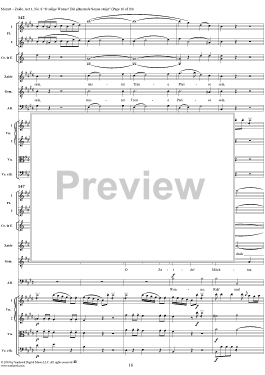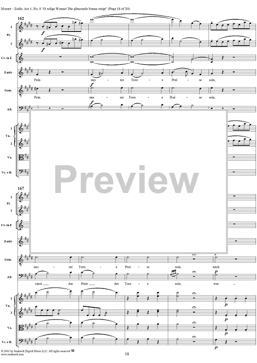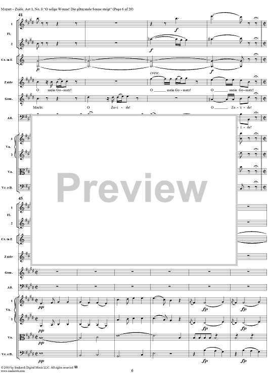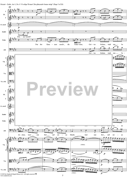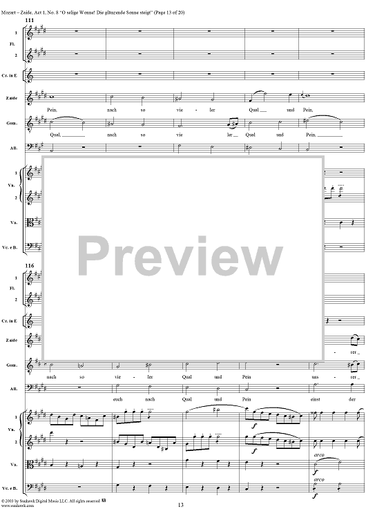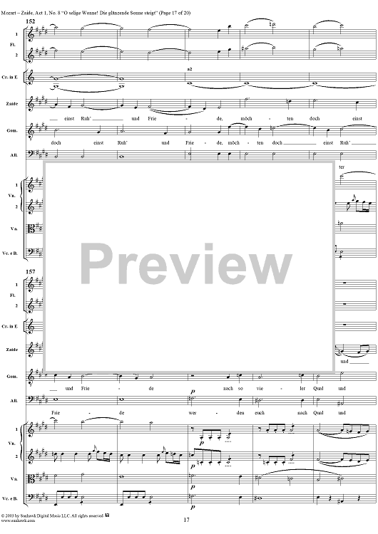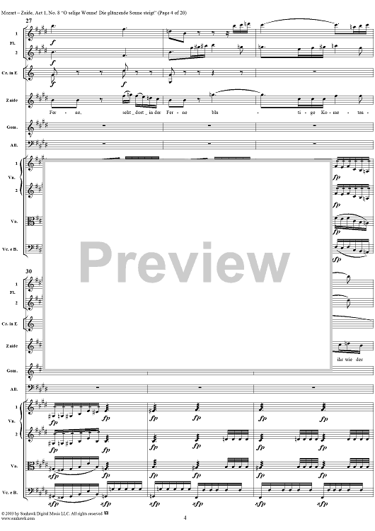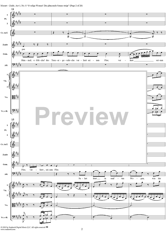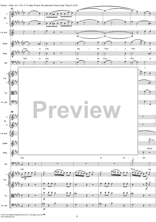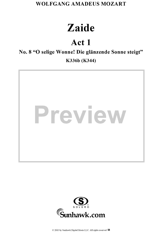 Digital Sheet Music for "O selige Wonne! Die glänzende Sonne steigt", No. 8 from "Zaide", Act 1, K336b (K344) - Full Score by Wolfgang Amadeus Mozart scored for Voice and Orchestra; id:291674