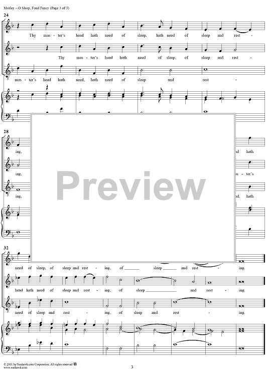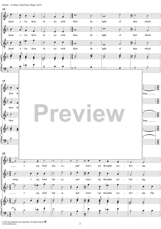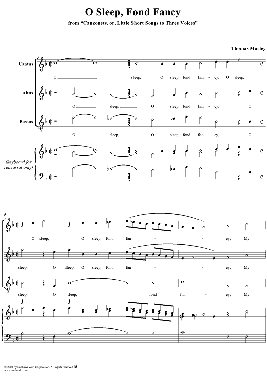 Digital Sheet Music for O Sleep, Fond Fancy by Thomas Morley scored for Three-part Mixed Chorus; id:259808