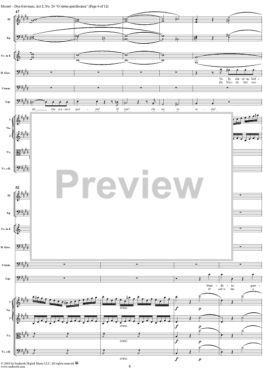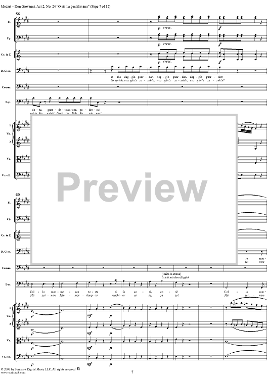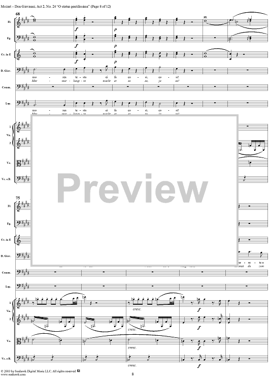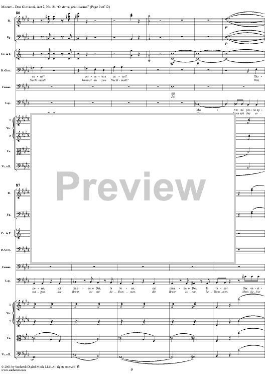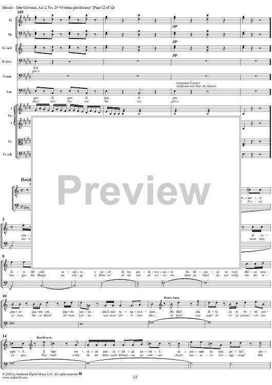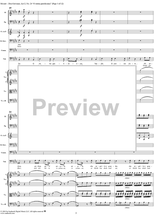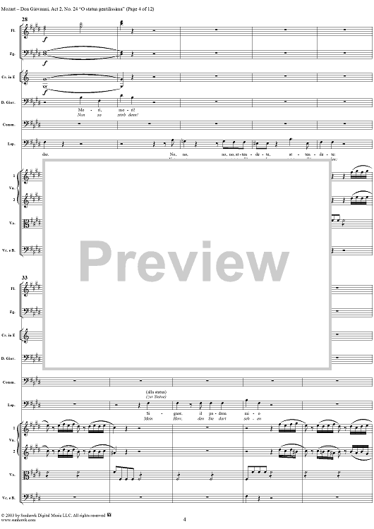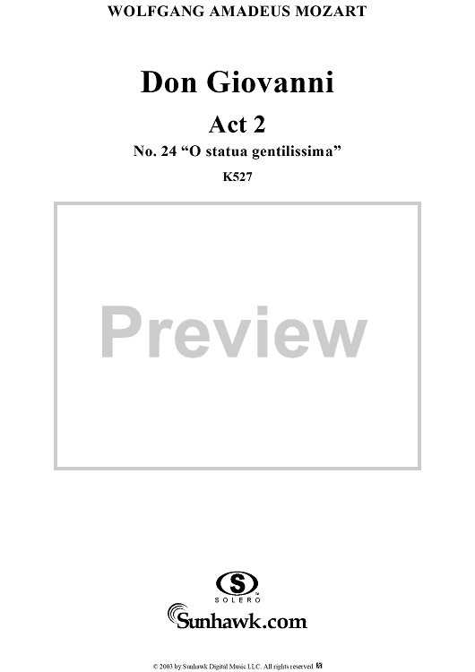 Digital Sheet Music for "O statua gentilissima", No. 24 from "Don Giovanni", Act 2, K527 - Full Score by Wolfgang Amadeus Mozart scored for Voice and Orchestra; id:291934
