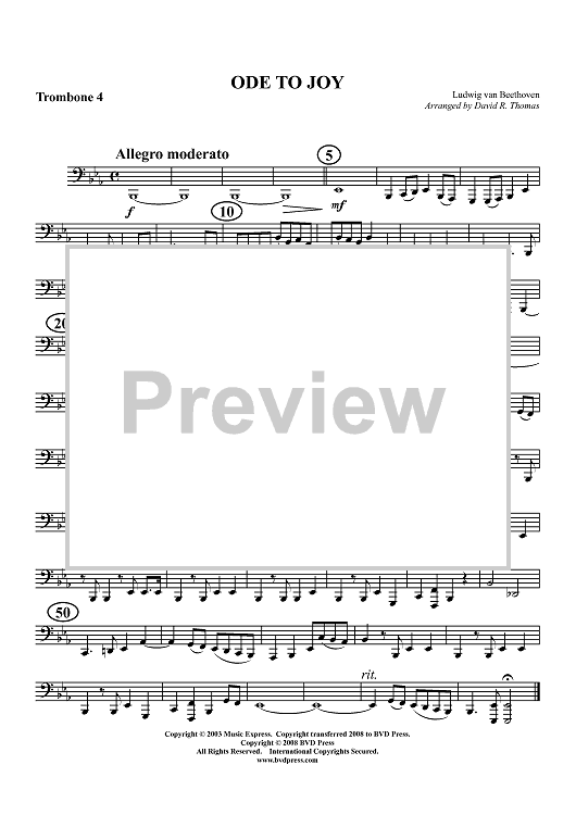 Digital Sheet Music for Ode to Joy - Trombone 4 by Ludwig van Beethoven, David R. Thomas scored for Trombone Quartet; id:411991