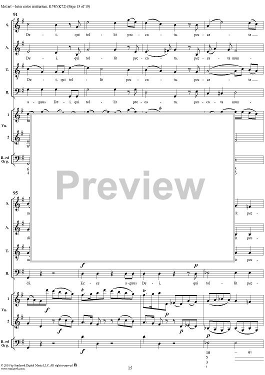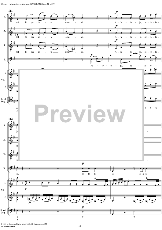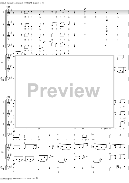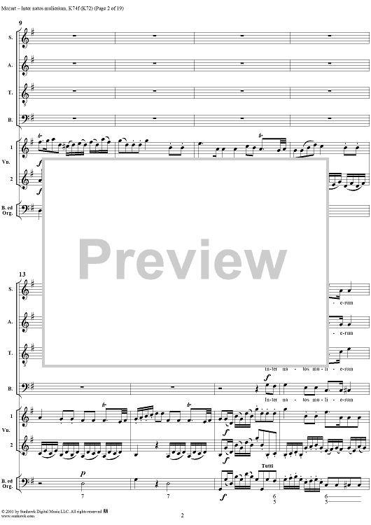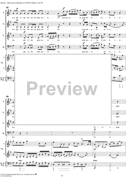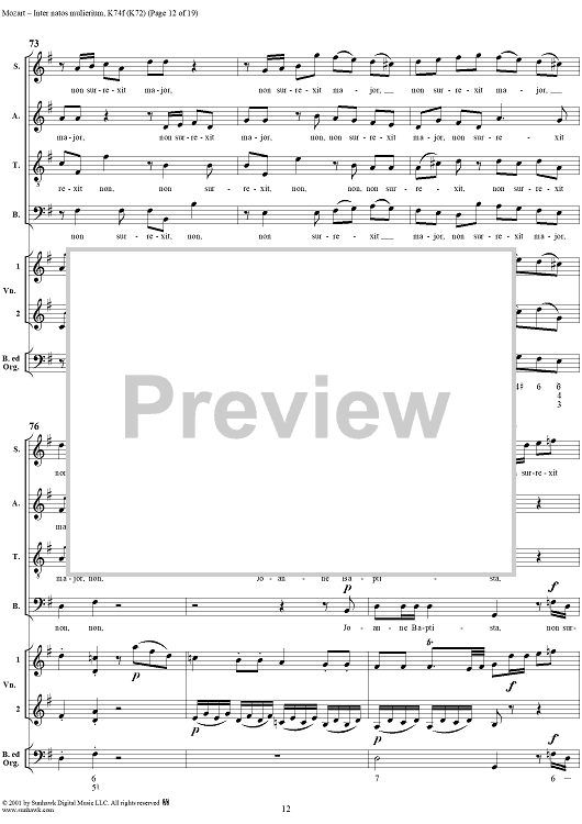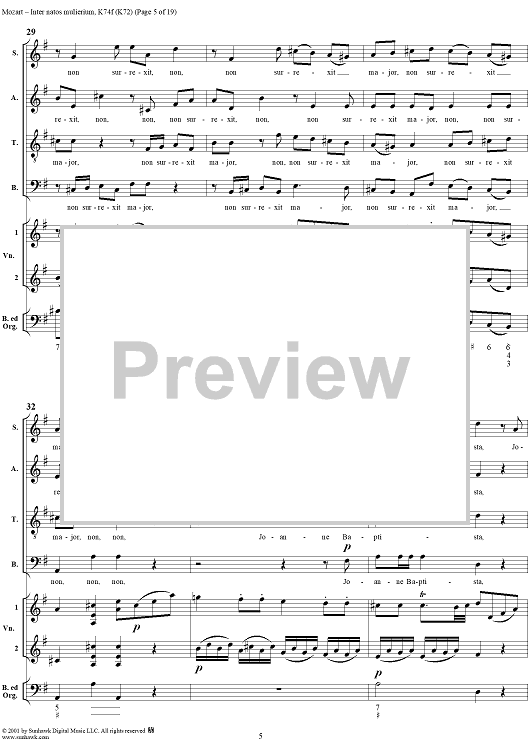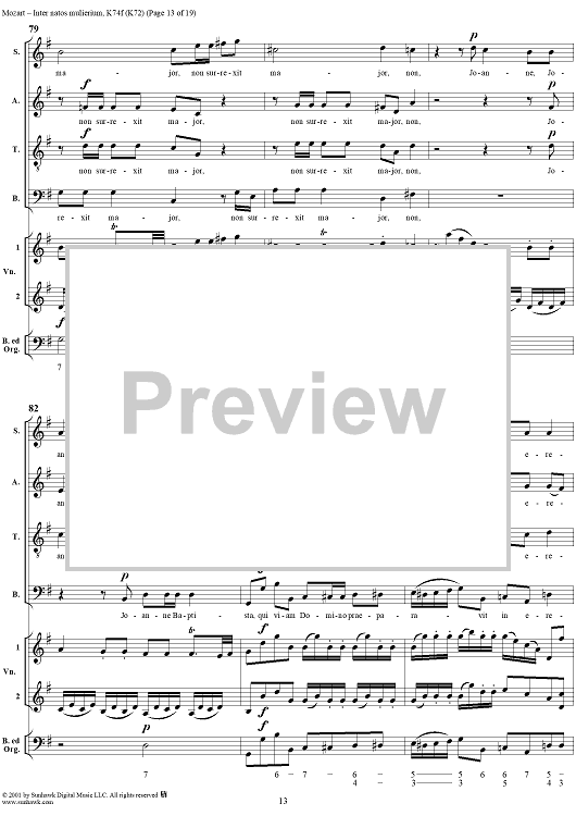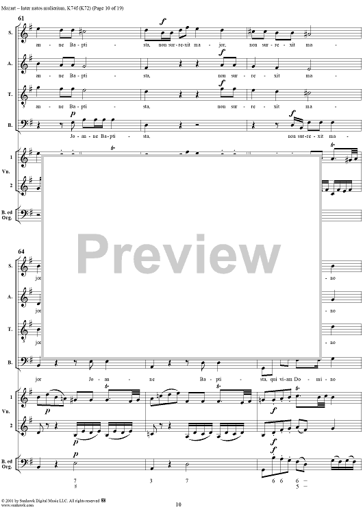 Digital Sheet Music for Offertorium pro festo sancti Joannis Baptistae "Inter natos mulierium," K74f (K72) by Wolfgang Amadeus Mozart scored for Four-part Mixed Chorus/Strings/Continuo; id:272073