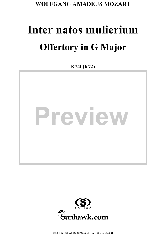 "Offertorium pro festo sancti Joannis Baptistae "Inter natos mulierium," K74f (K72)" Sheet Music by Wolfgang Amadeus Mozart