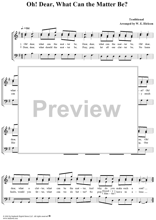Digital Sheet Music for Oh! Dear, What Can the Matter Be? by William E. Hickson, Traditional scored for Three-part Mixed Chorus; id:260556