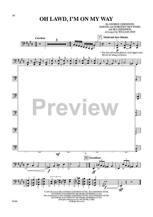 Digital Sheet Music for Oh Lawd, I'm on My Way - Cello by George Gershwin, Ira Gershwin, Dubose & Dorothy Heyward, William Zinn scored for String Quartet or String Orchestra; id:362330