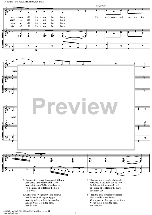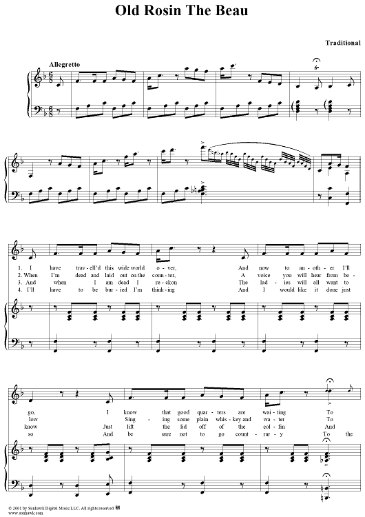 Digital Sheet Music for Old Rosin The Beau by Traditional scored for Piano/Vocal; id:252608
