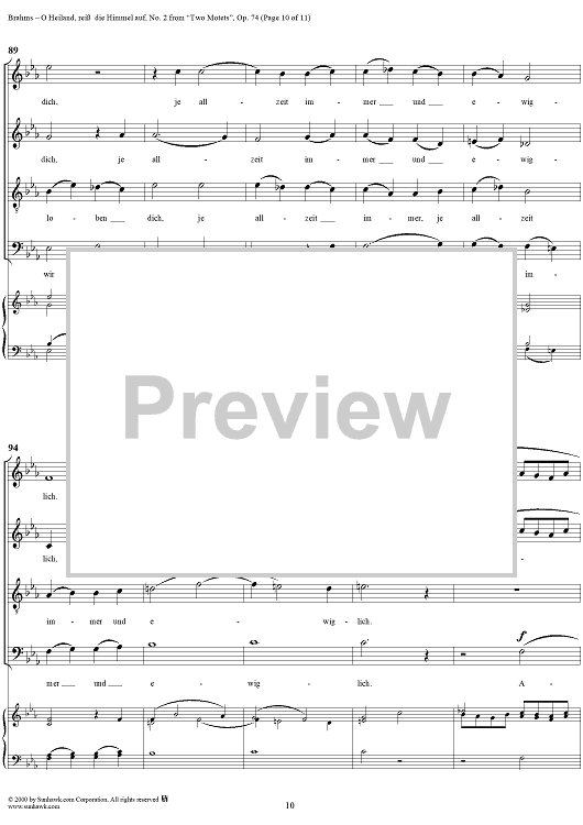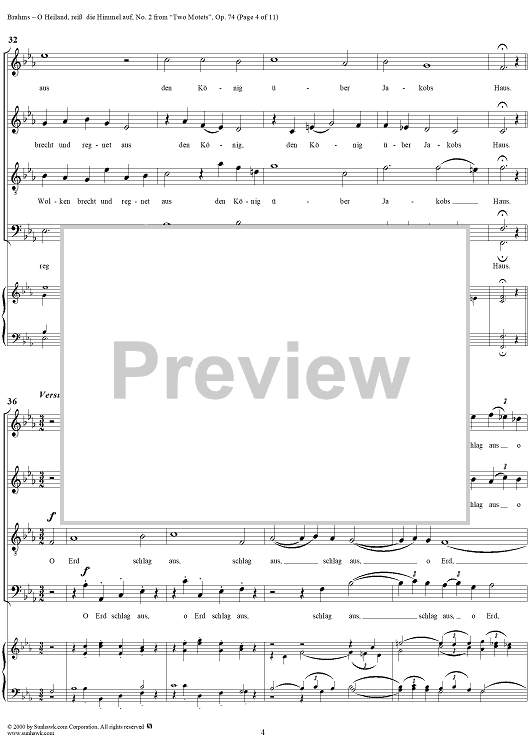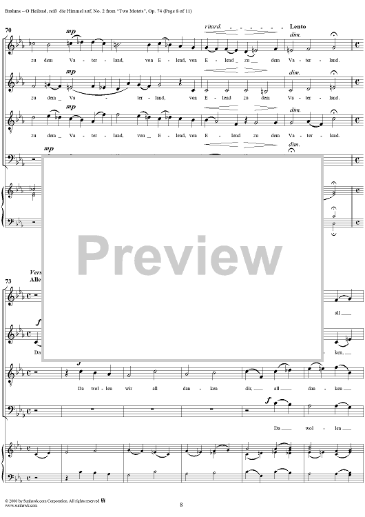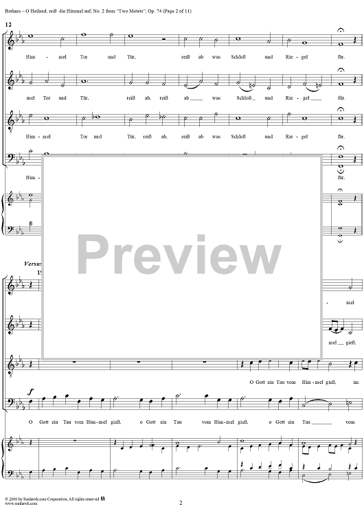 Digital Sheet Music for Op. 74, No. 2: O Heiland, reib die Himmel auf by Johannes Brahms scored for Four-part Mixed Chorus; id:274007