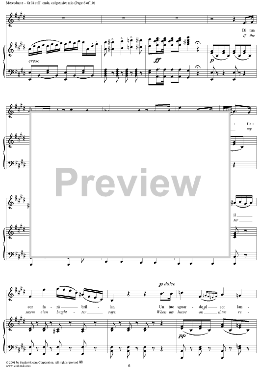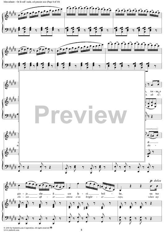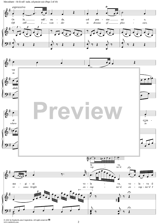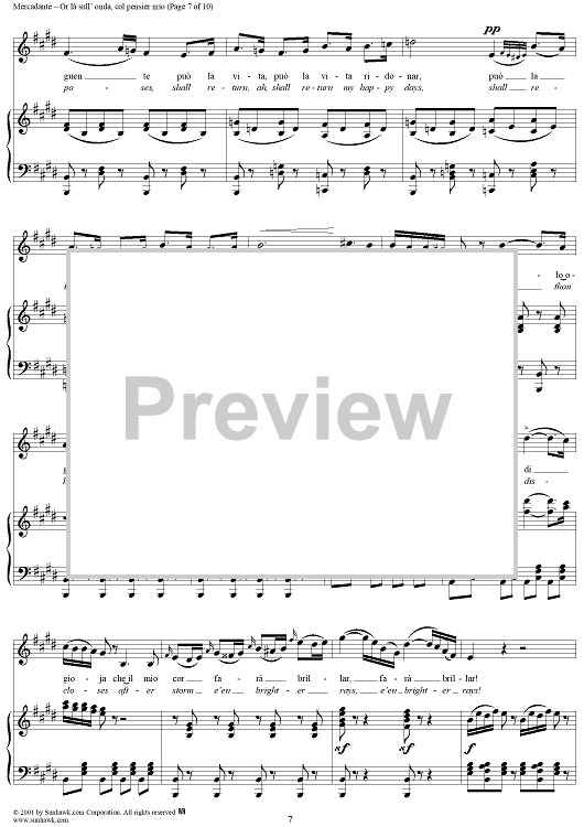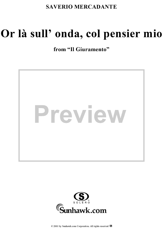 Digital Sheet Music for Or là sull' onda, col pensier mio, from "Il Giuramento" by Saverio Mercadante scored for Voice/Piano; id:273442