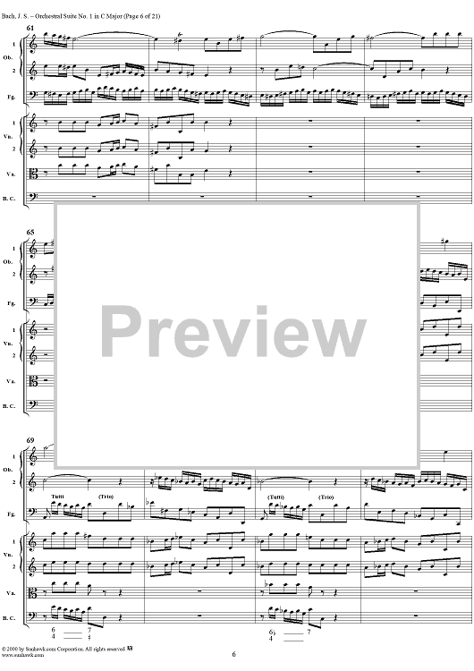 Digital Sheet Music for Orchestral Suite No. 1 in C Major - Score by Johann Sebastian Bach scored for Chamber Orchestra; id:234602