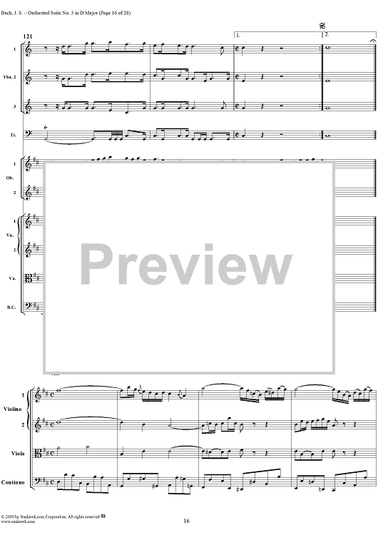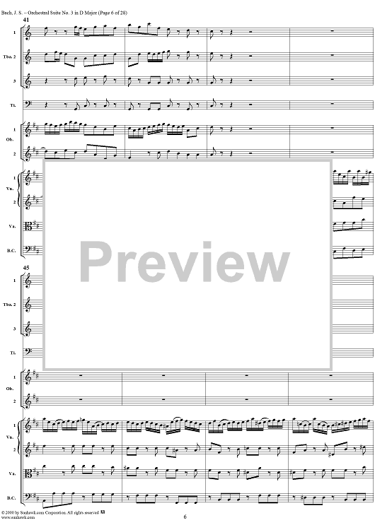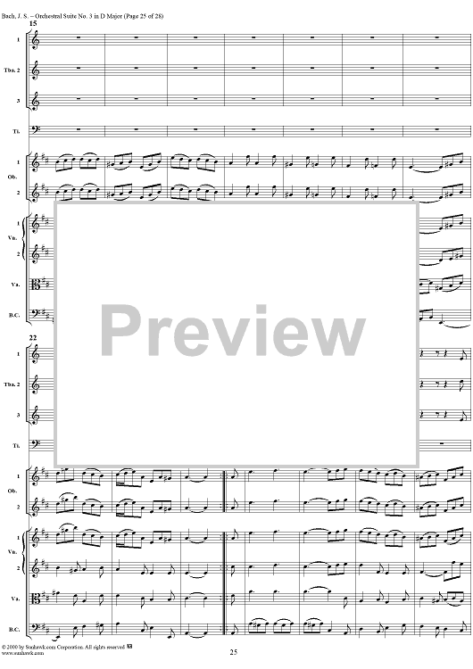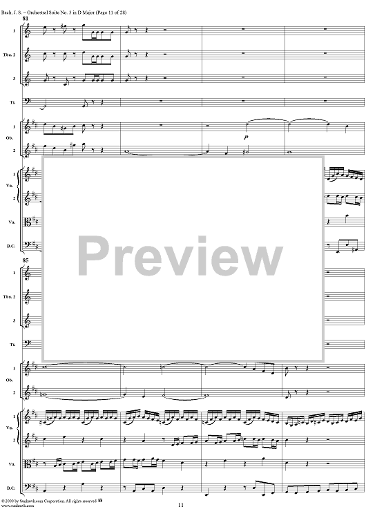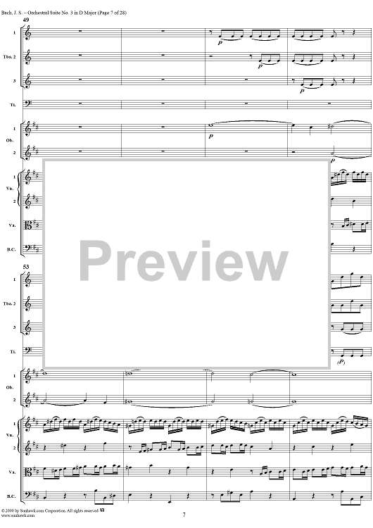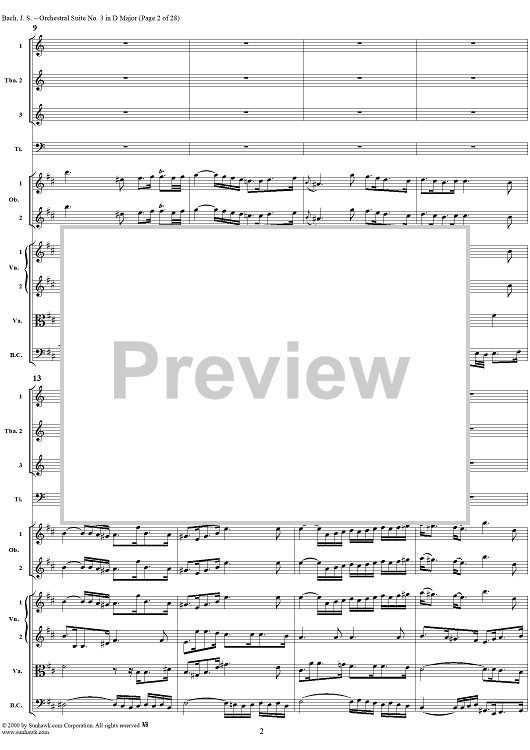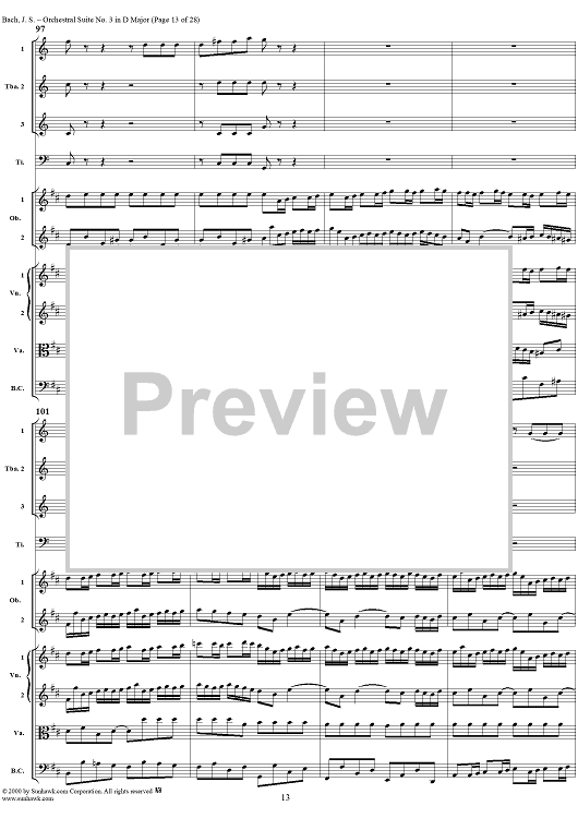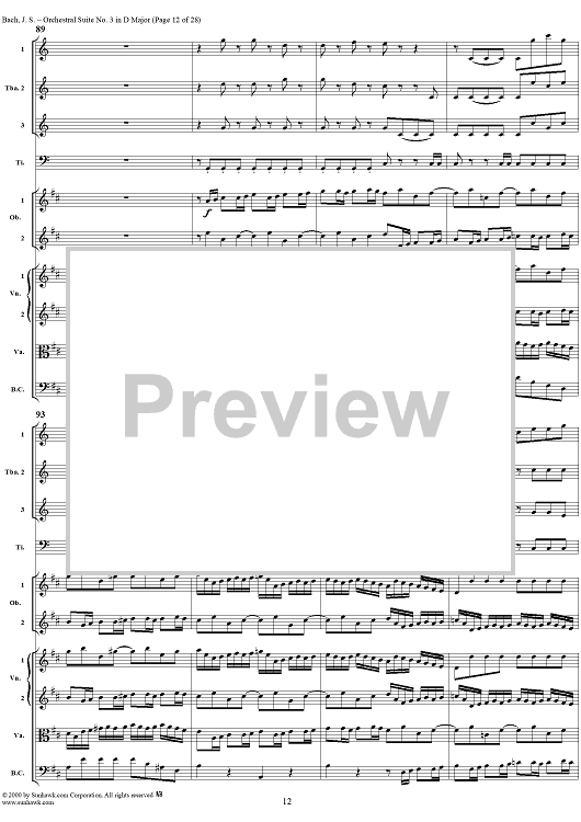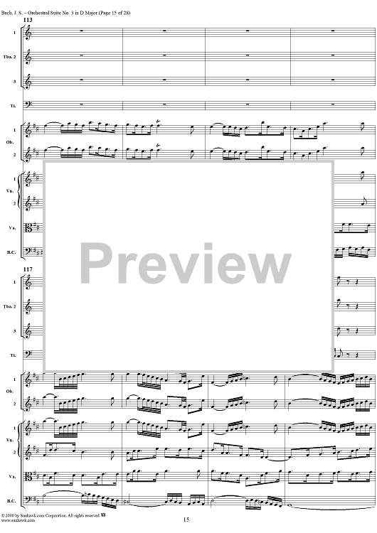 Digital Sheet Music for Orchestral Suite No. 3 in D Major - Score by Johann Sebastian Bach scored for Chamber Orchestra; id:276215