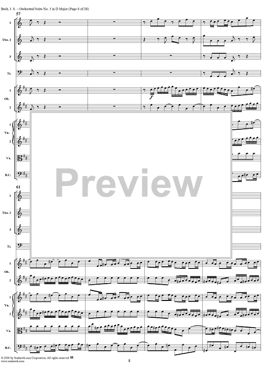 "Orchestral Suite No. 3 in D Major - Score" Sheet Music by Johann Sebastian Bach