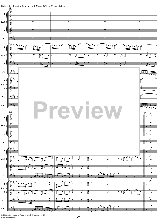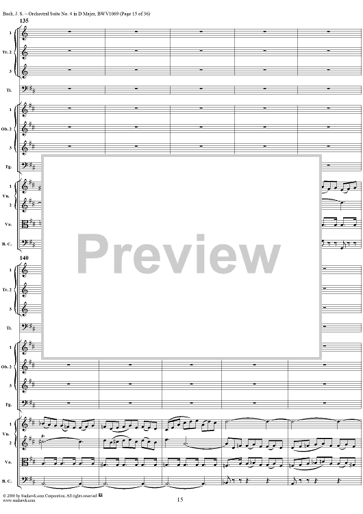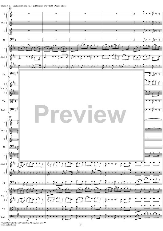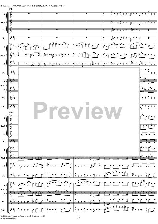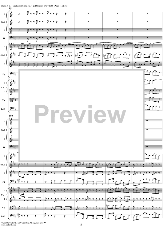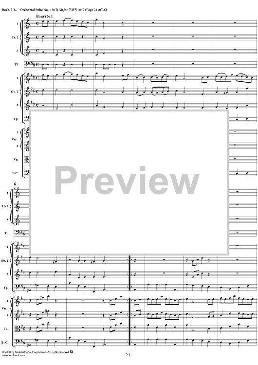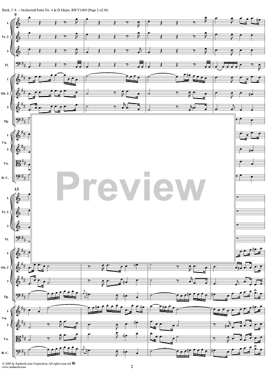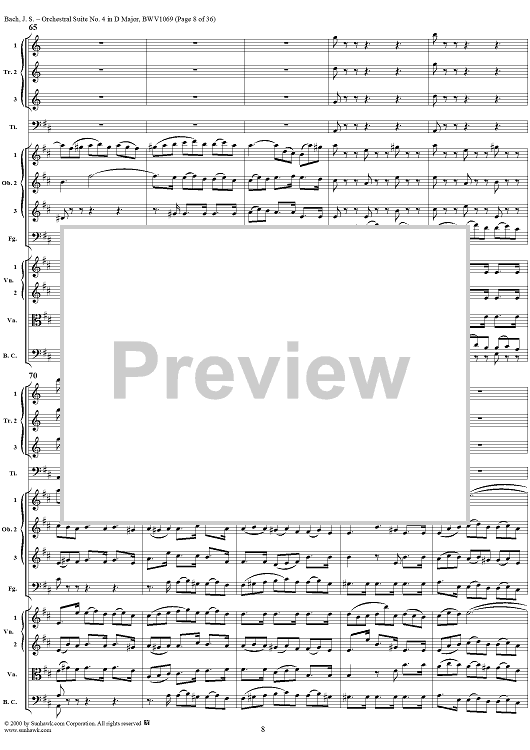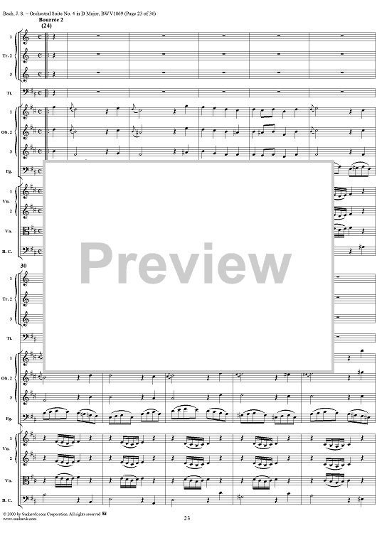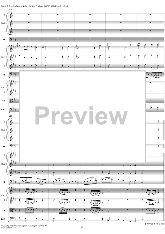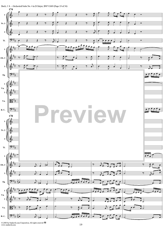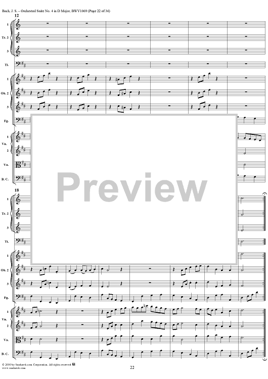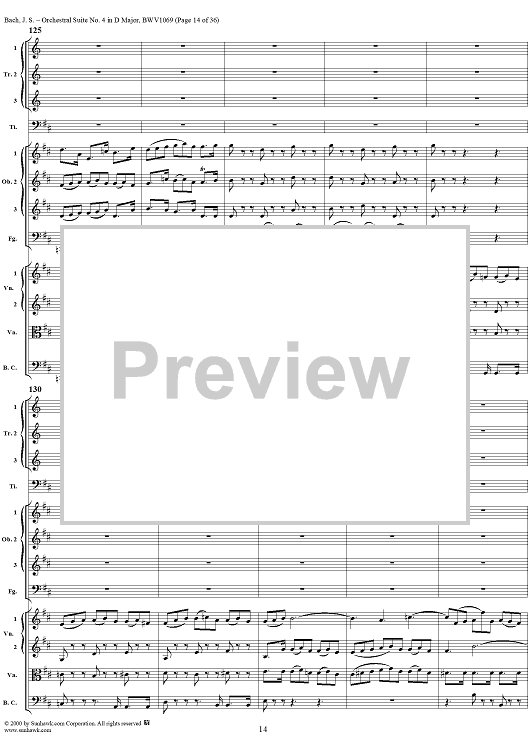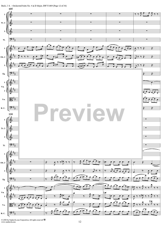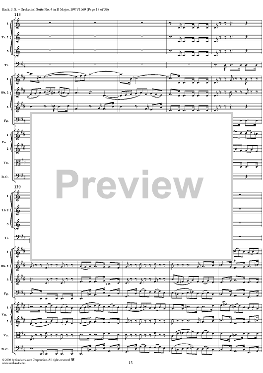 Digital Sheet Music for Orchestral Suite No. 4 in D Major - Score by Johann Sebastian Bach scored for Chamber Orchestra; id:241420
