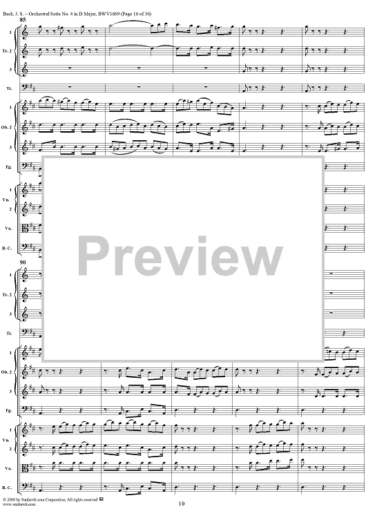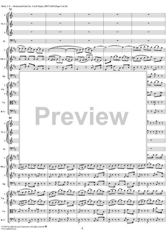 "Orchestral Suite No. 4 in D Major - Score" Sheet Music by Johann Sebastian Bach