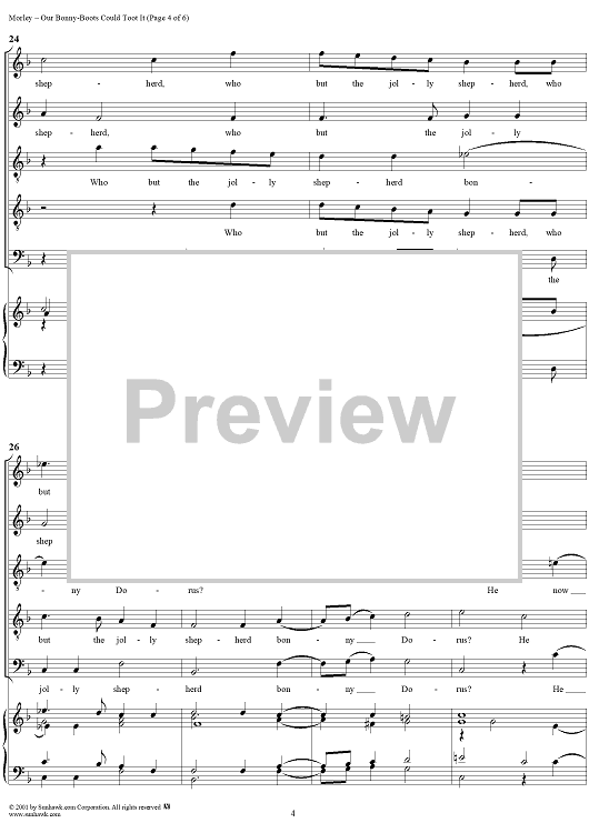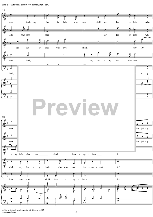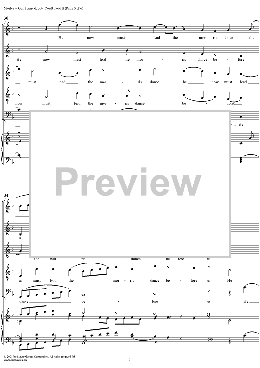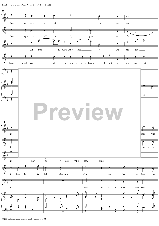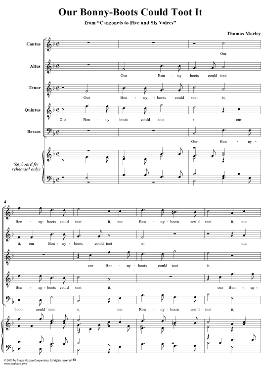 Digital Sheet Music for Our Bonny-Boots Could Toot It by Thomas Morley scored for Five-part Mixed Chorus; id:259783