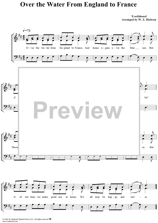 Digital Sheet Music for Over the Water From England to France by William E. Hickson, Traditional scored for Three-part Mixed Chorus; id:261974