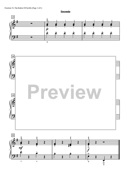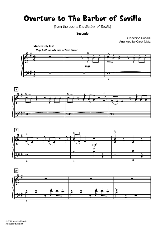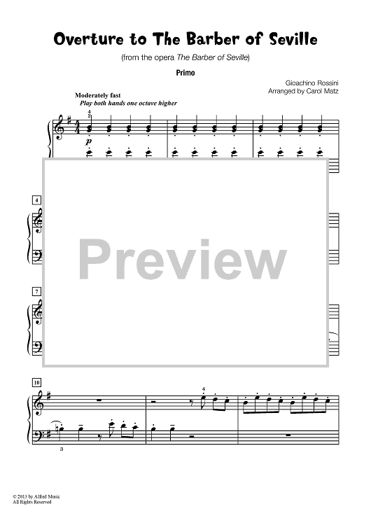 Digital Sheet Music for Overture to The Barber Of Seville by Gioachino Rossini, Carol Matz scored for 1 Piano, 4 Hands; id:451517
