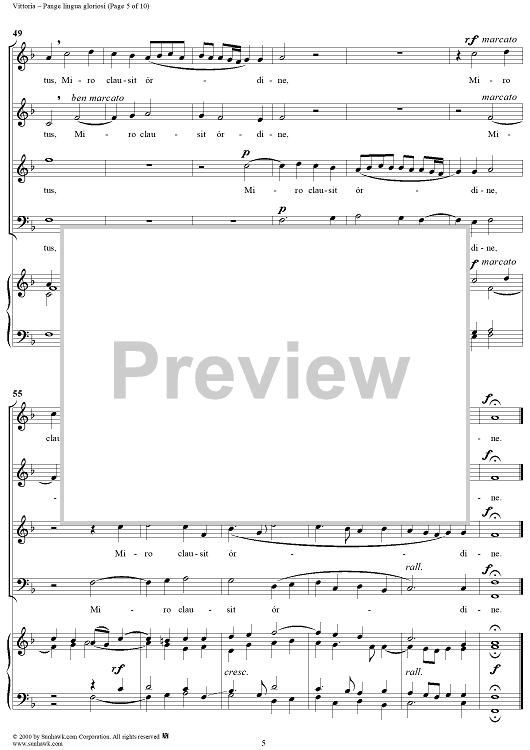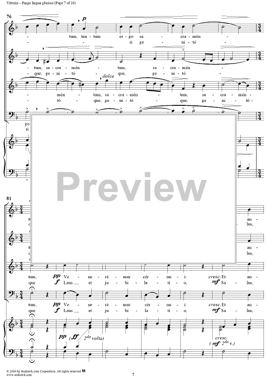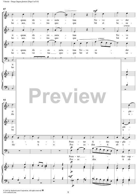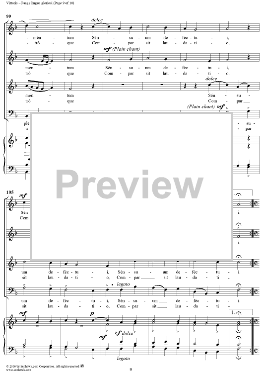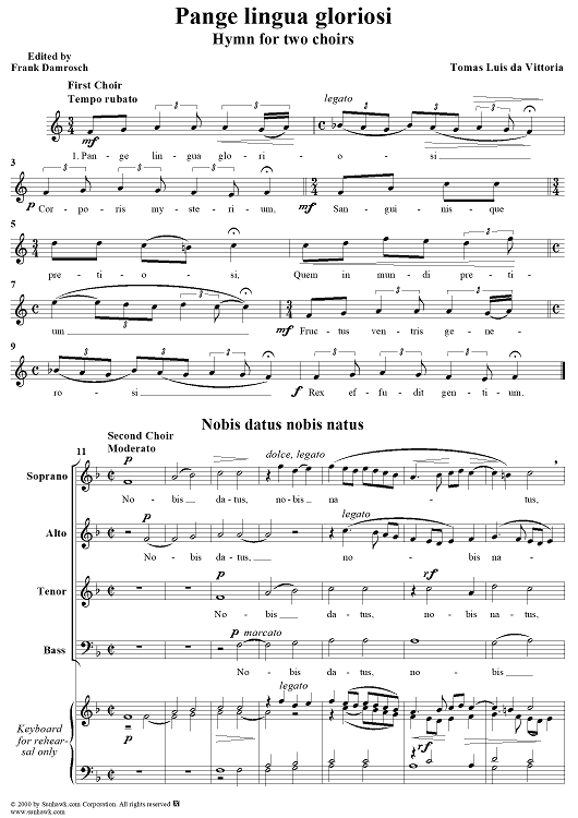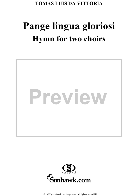 Digital Sheet Music for Pange lingua gloriosi by Tomás Luis de Victoria scored for Mixed Chorus; id:264695