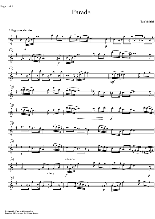 Digital Sheet Music for Parade by , Ton Verhiel scored for Saxophone; id:333714