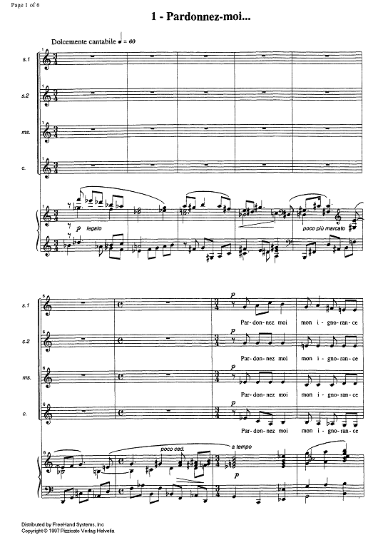 Digital Sheet Music for Pardonnez-moi by , Marco Sofianopulo scored for Female Chorus/Piano; id:330819