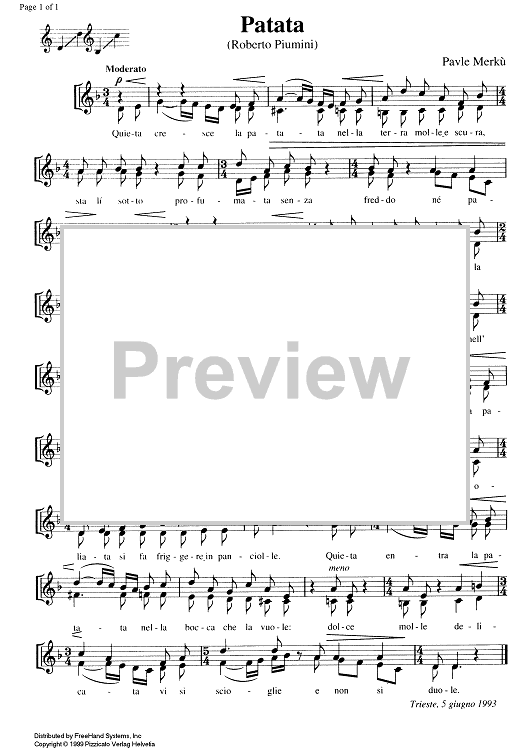 Digital Sheet Music for Patata by , Pavle Merkù scored for Female Chorus; id:333955