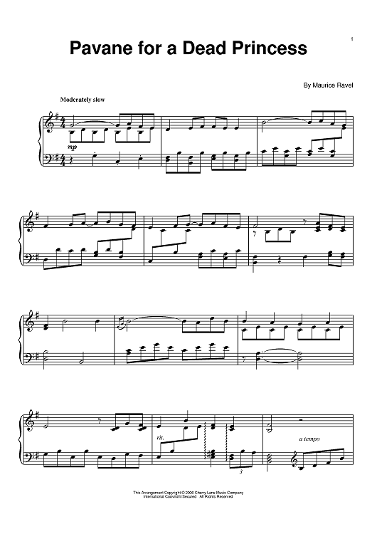 Digital Sheet Music for Pavane (For A Dead Princess) by Maurice Ravel scored for Piano; id:389496