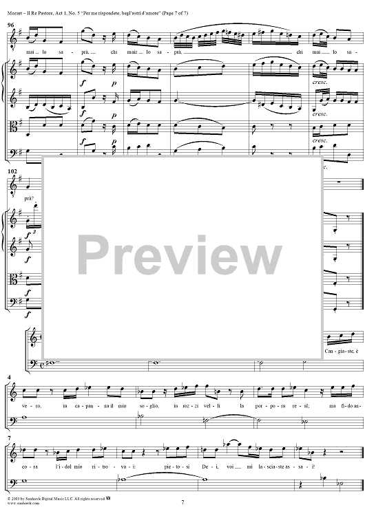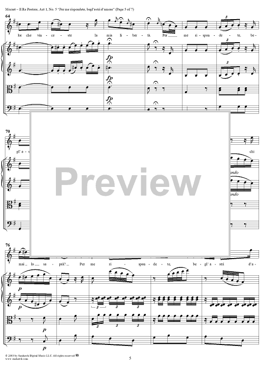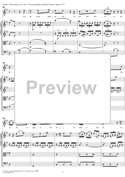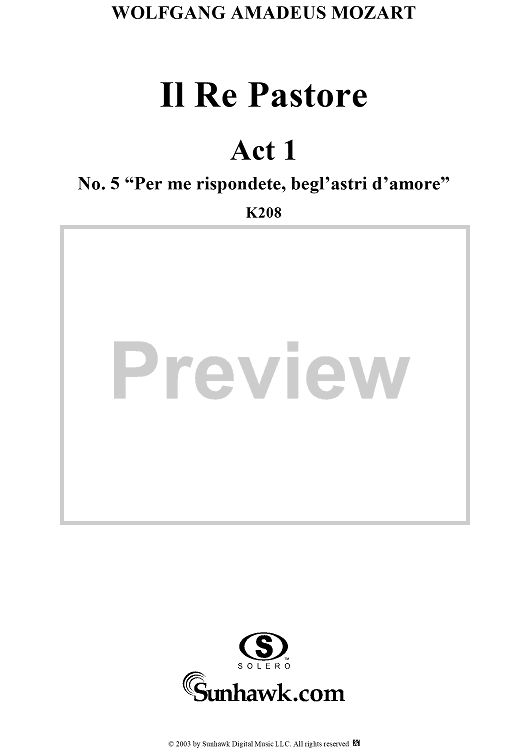 Digital Sheet Music for Per me rispondete begl'astri d'amore, No. 5 from "Il Re Pastore", Act 1 (K208) - Full Score by Wolfgang Amadeus Mozart scored for Voice and Orchestra; id:291440