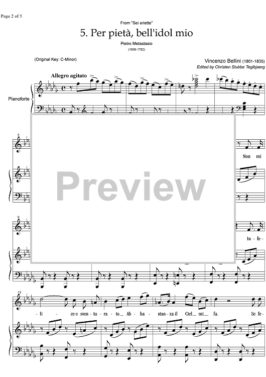 "Per pietà, bell'idol mio" Sheet Music by Vincenzo Bellini