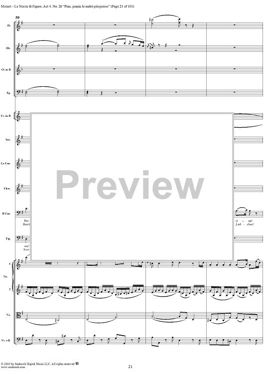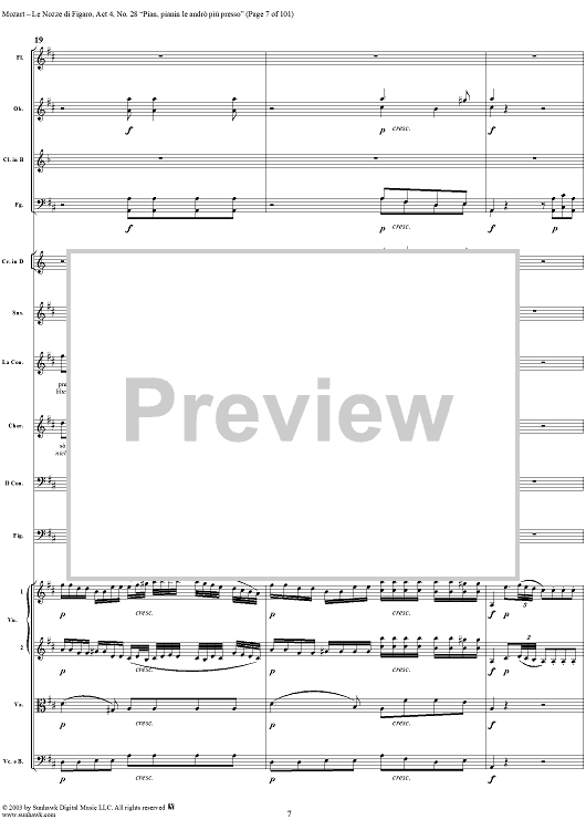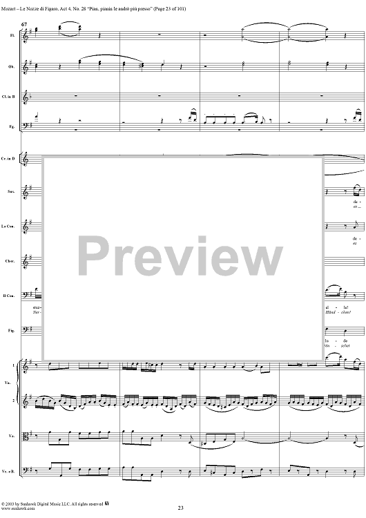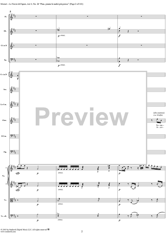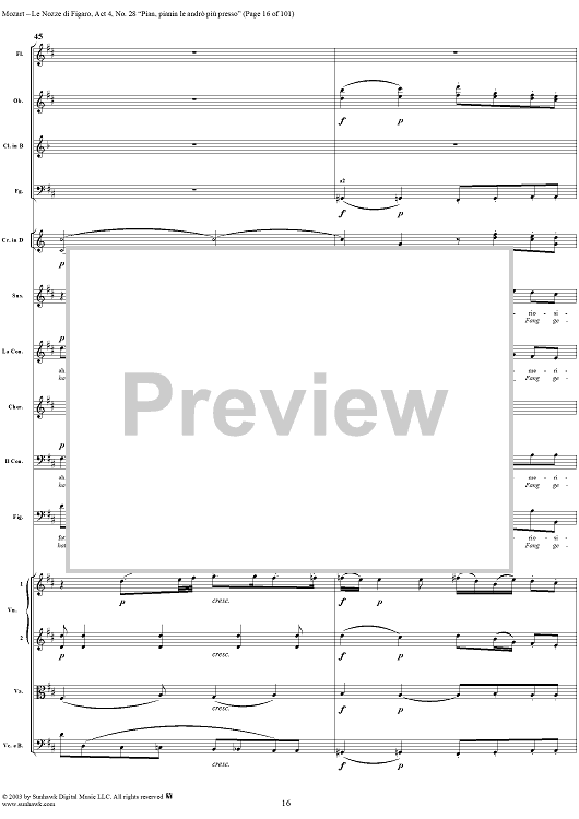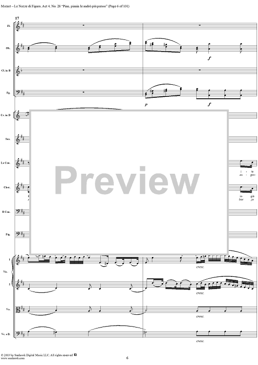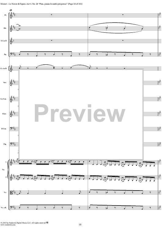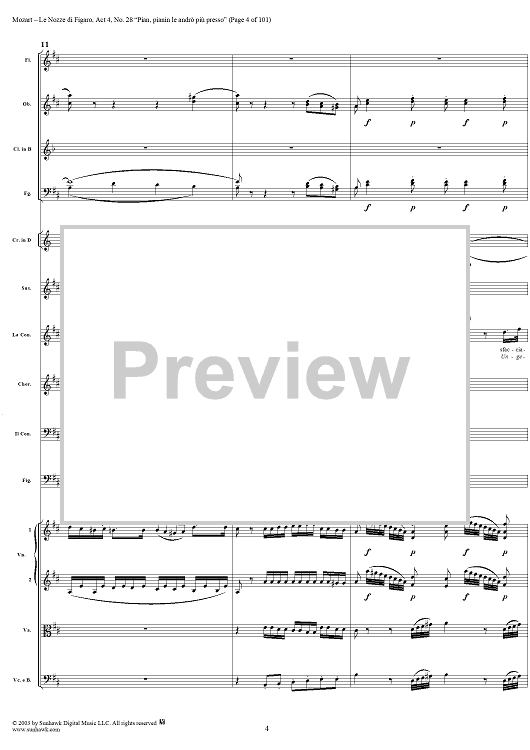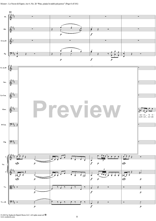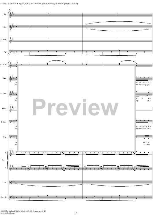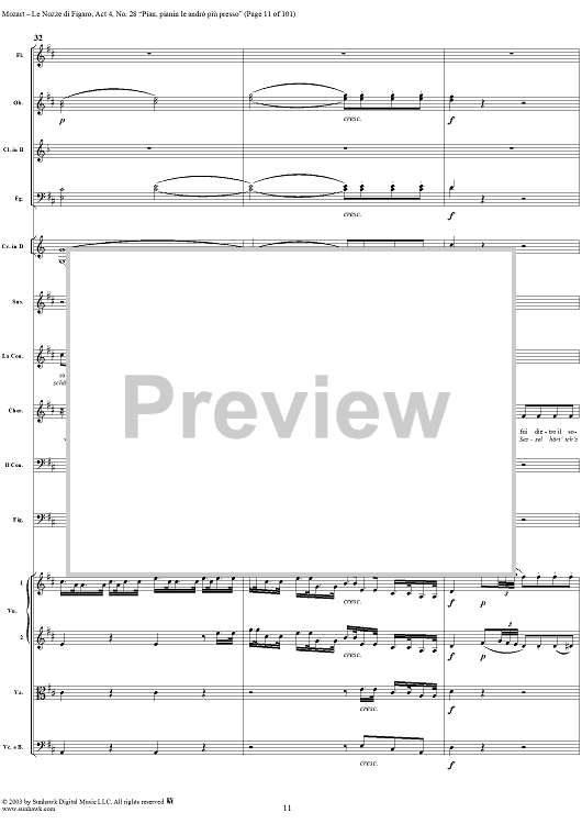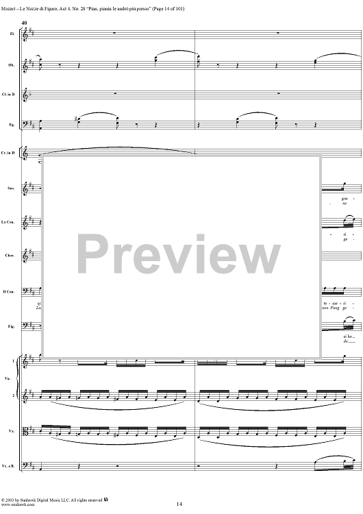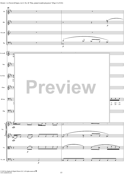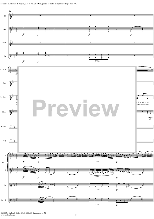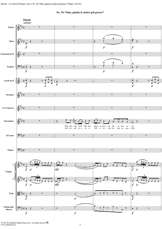 Digital Sheet Music for "Pian, pianin le andrò più presso", No. 28 from "Le Nozze di Figaro", Act 4, K492 - Full Score by Wolfgang Amadeus Mozart scored for Voice and Orchestra; id:292225