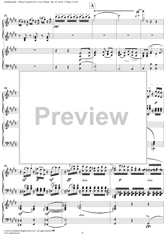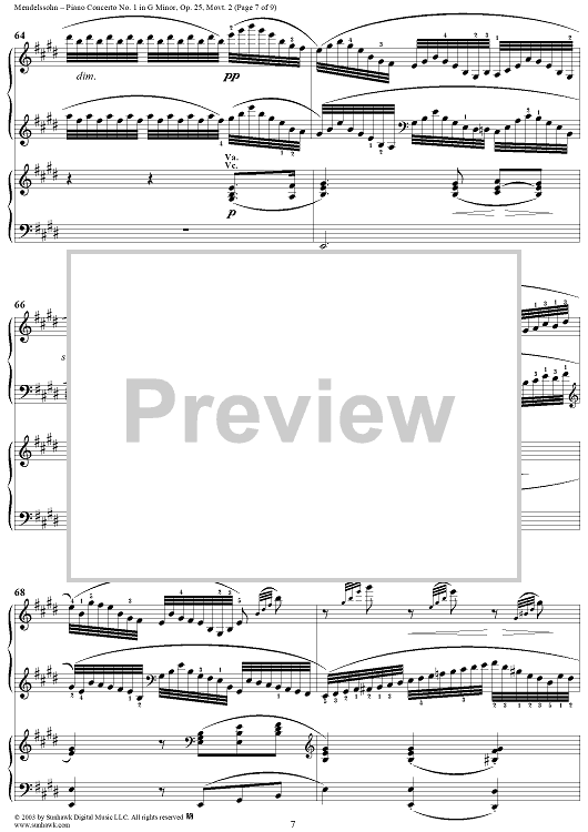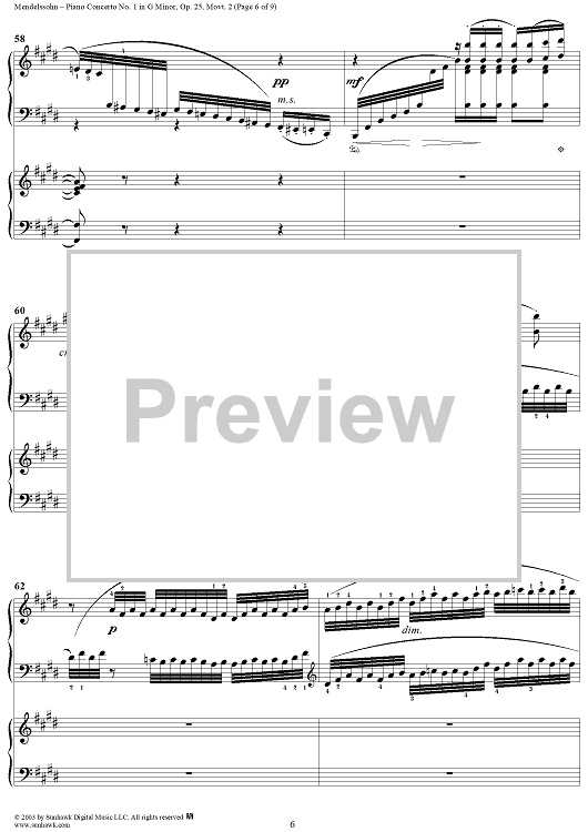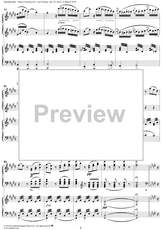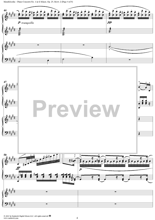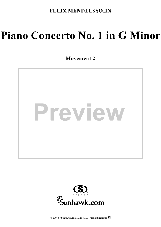 "Piano Concerto no. 1 in G minor, Op. 25 Movt. 2" Sheet Music by Felix Mendelssohn