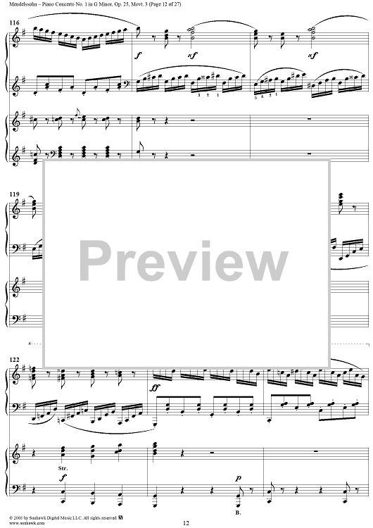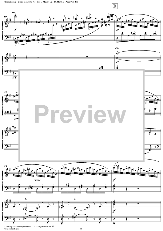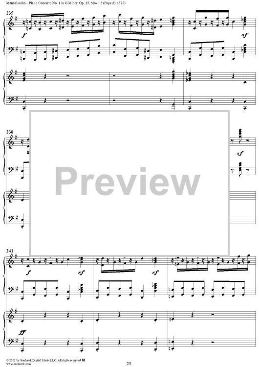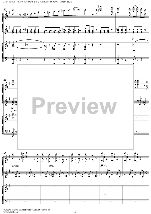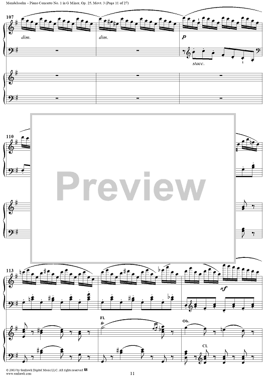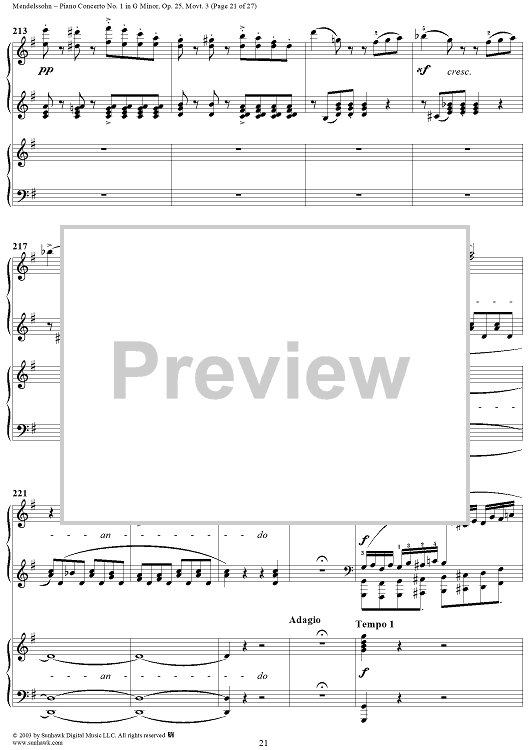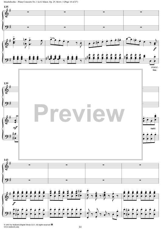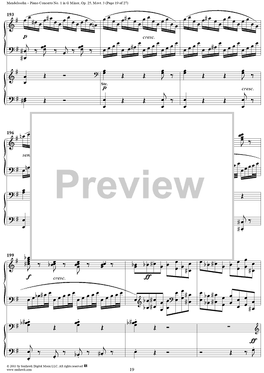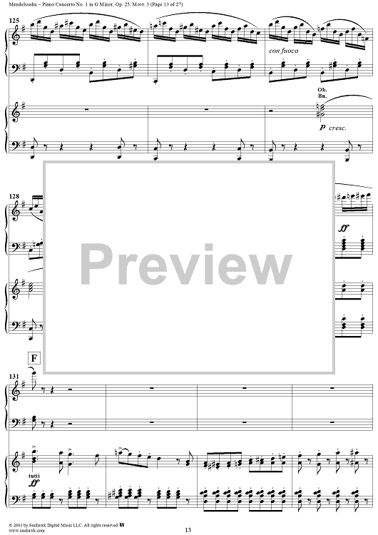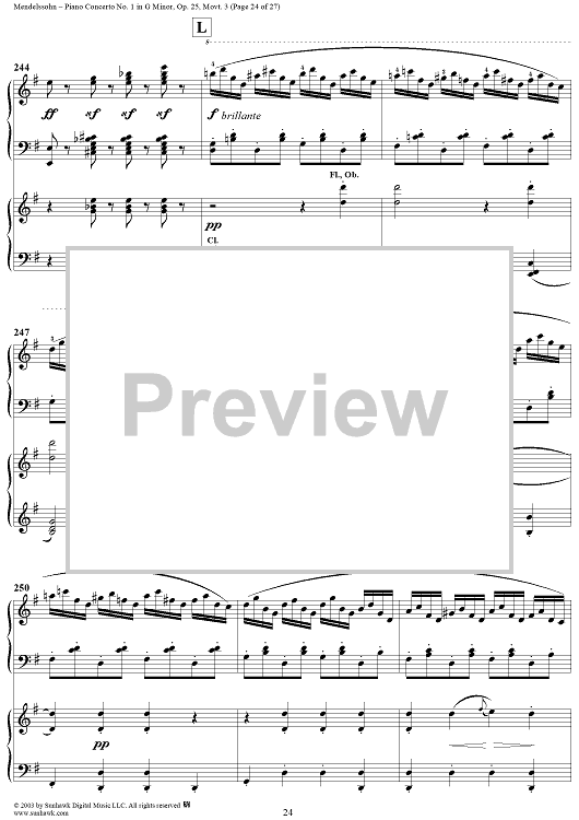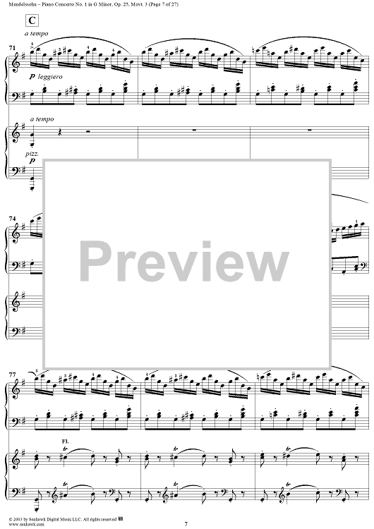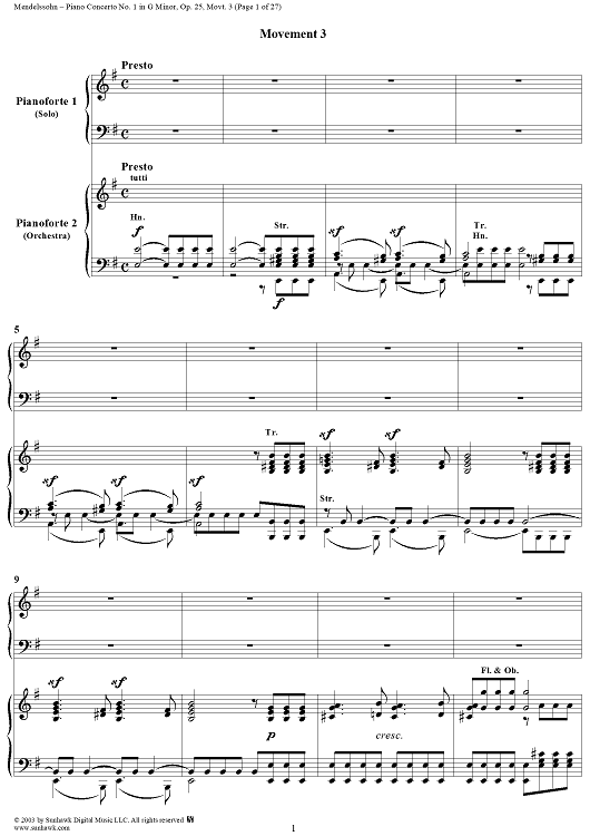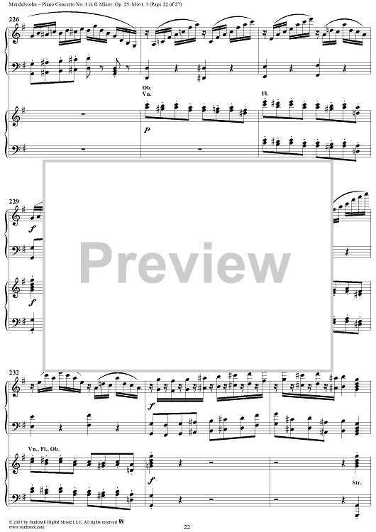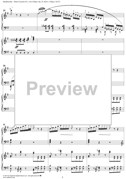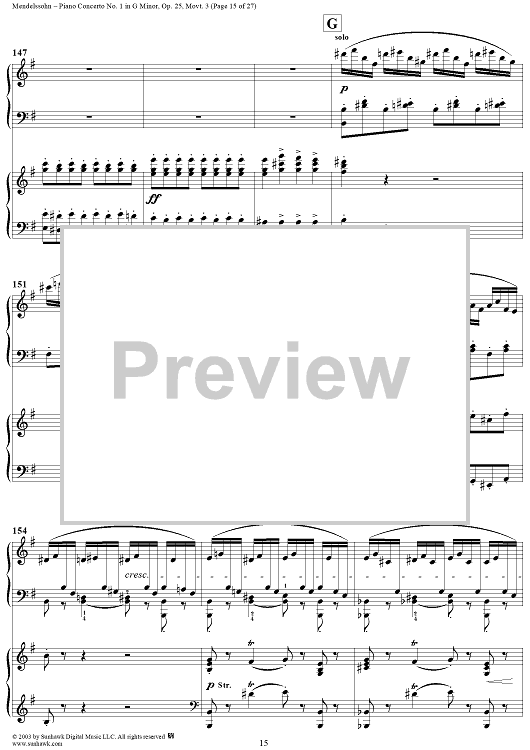 "Piano Concerto no. 1 in G minor, Op. 25 Movt. 3" Sheet Music by Felix Mendelssohn