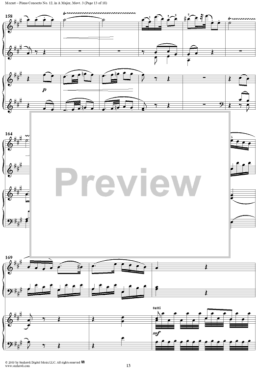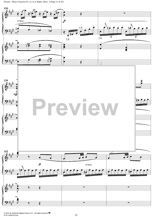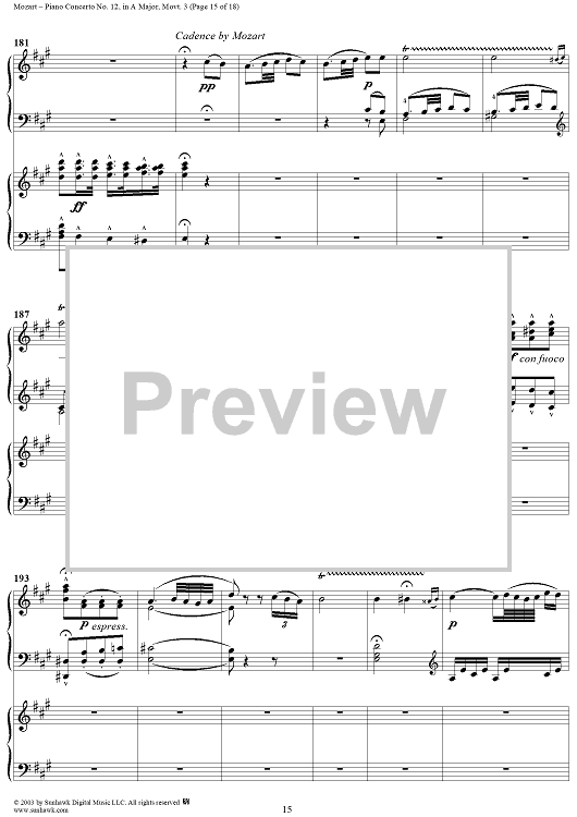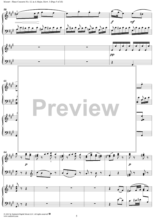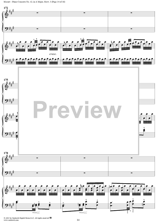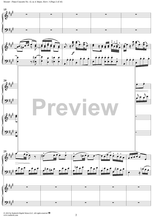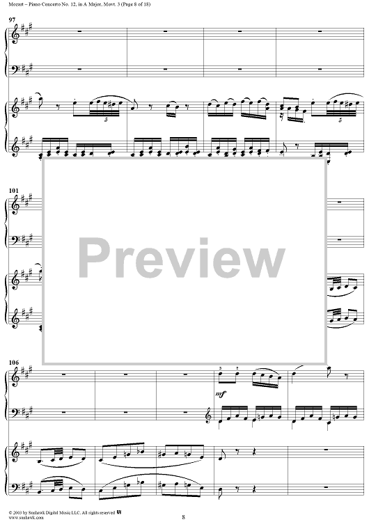 "Piano Concerto No. 12 in A Major, K385p (K414), Movement 3" Sheet Music by Wolfgang Amadeus Mozart