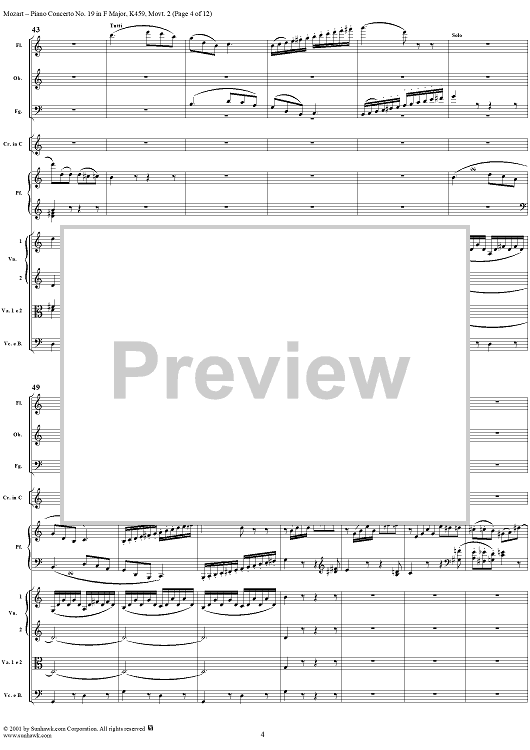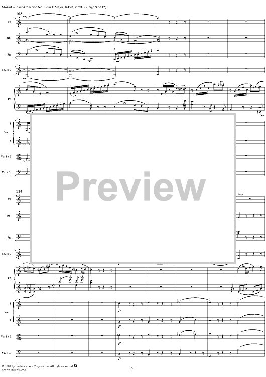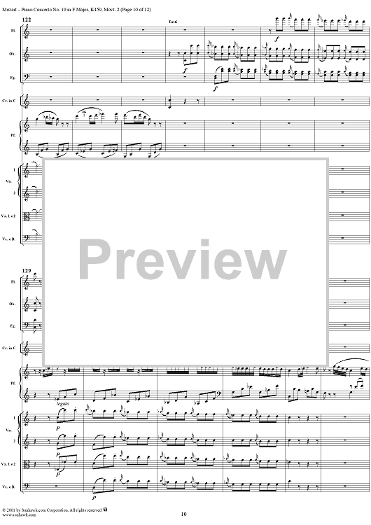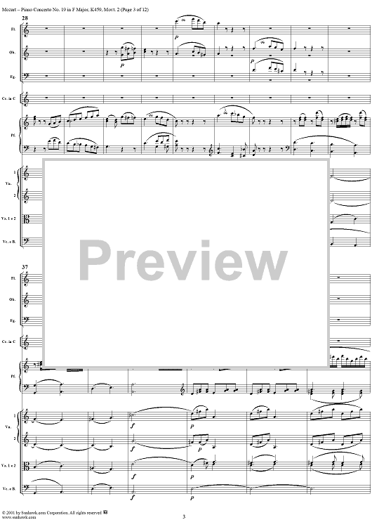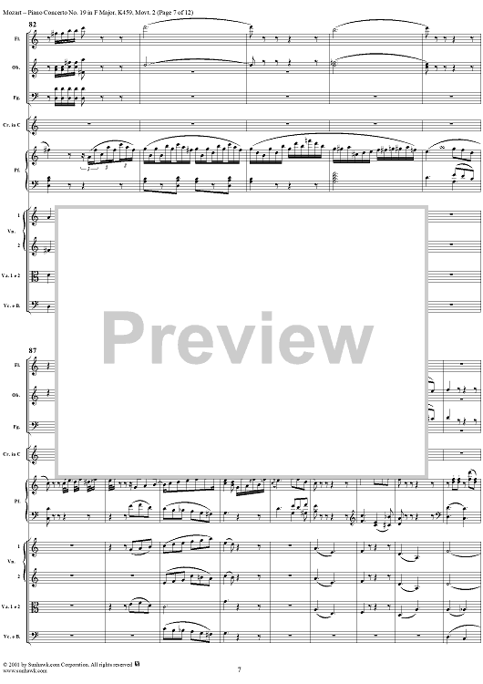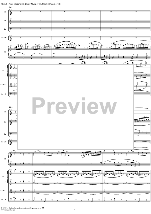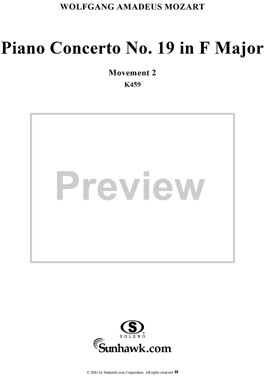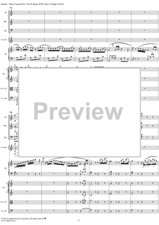 Digital Sheet Music for Piano Concerto No. 19 in F Major, Movement 2 (K459) - Full Score by Wolfgang Amadeus Mozart scored for Piano and Orchestra; id:253193