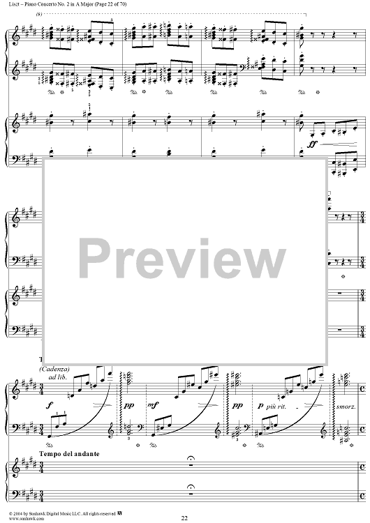 "Piano Concerto No. 2 in A Major" Sheet Music by Franz Liszt