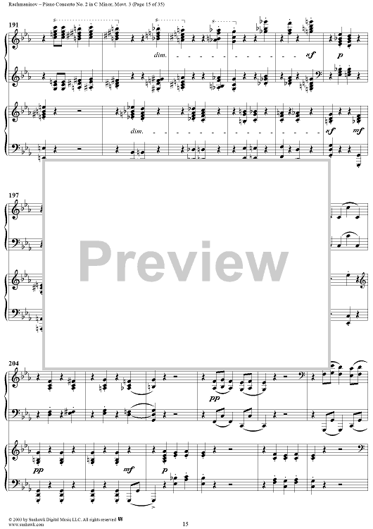 "Piano Concerto No. 2 in C Minor, Op. 18, Mvmt. 3" Sheet Music by Sergei Rachmaninoff