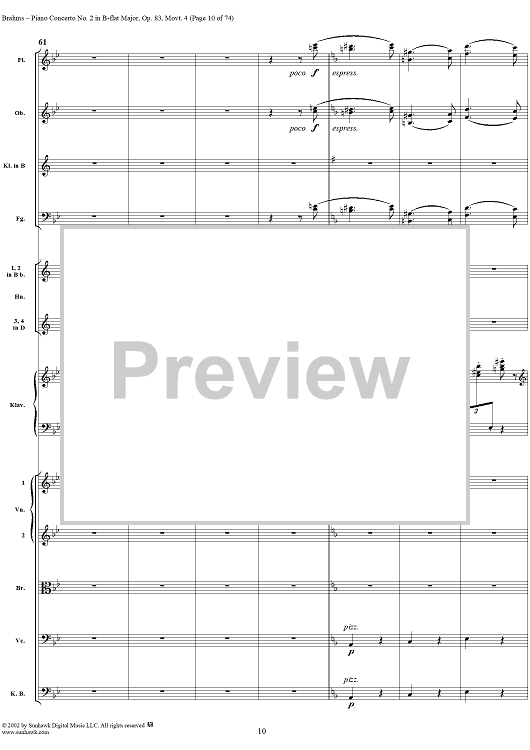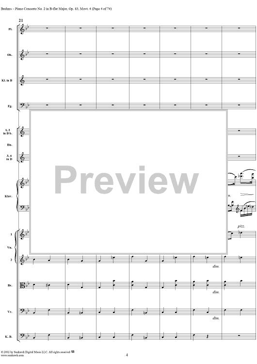 Digital Sheet Music for Piano Concerto No. 2, Movement 4 - Full Score by Johannes Brahms scored for Piano and Orchestra; id:285224
