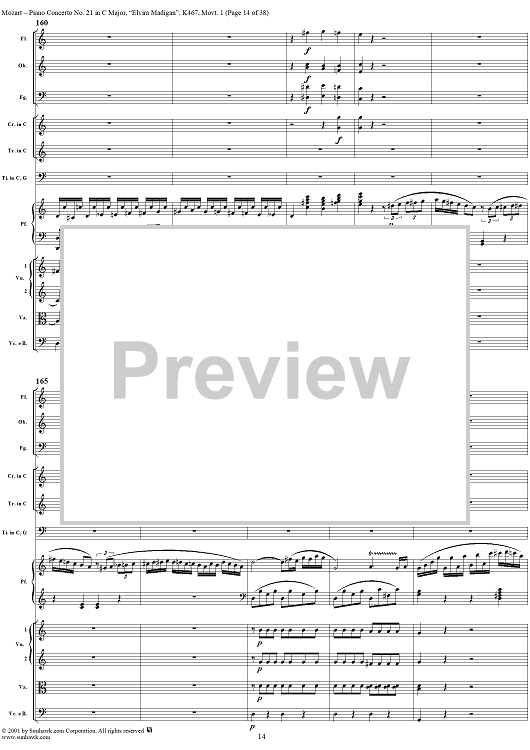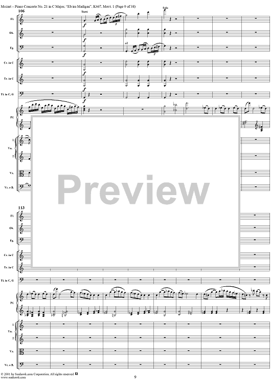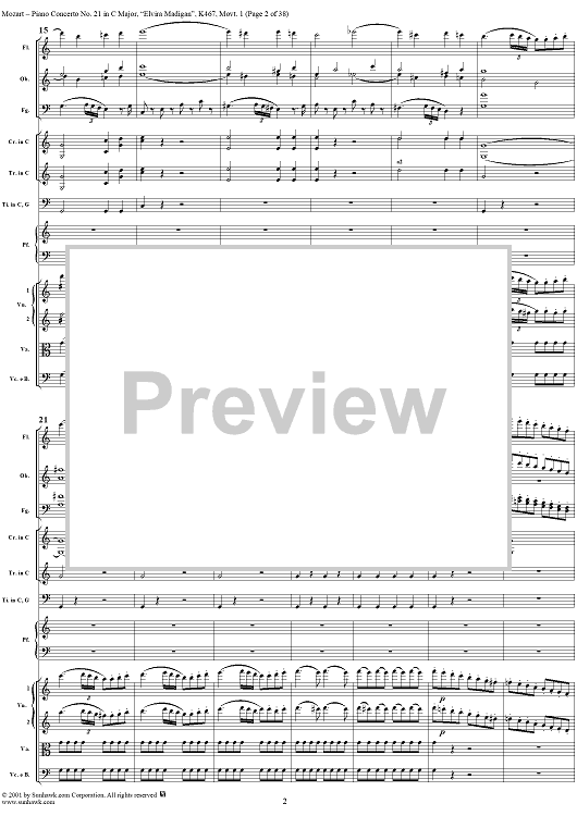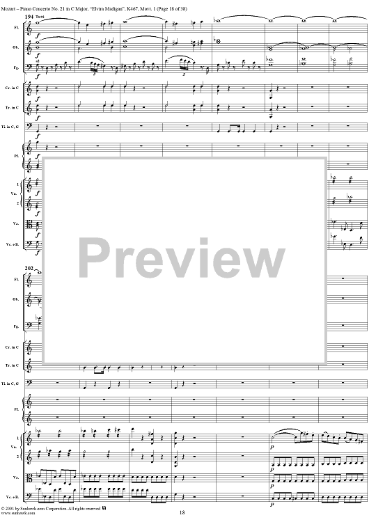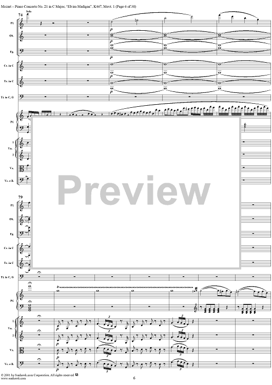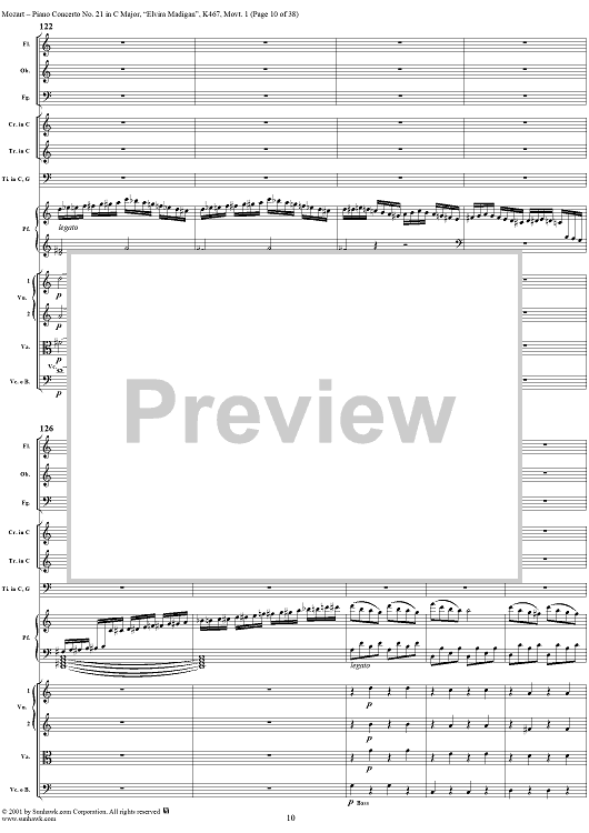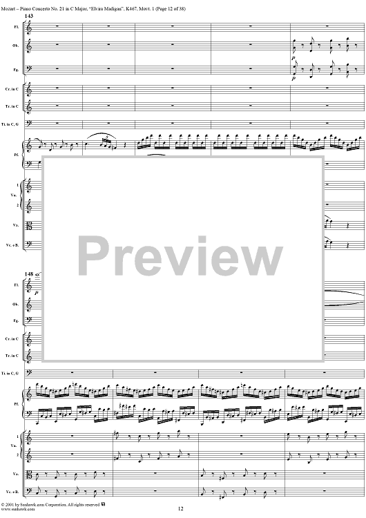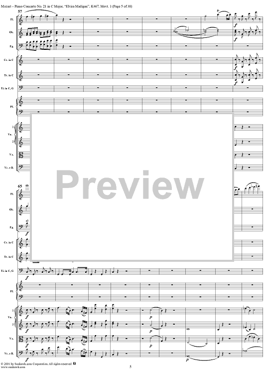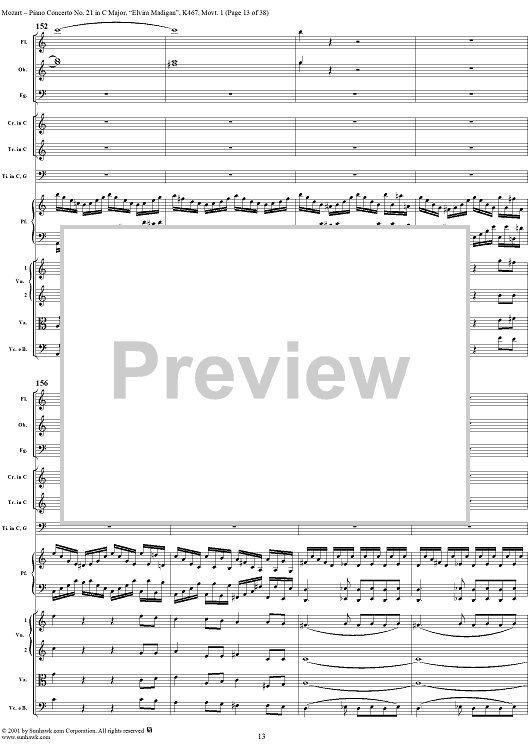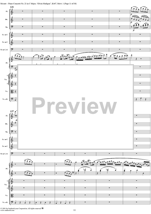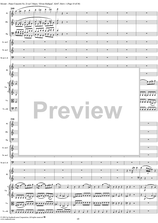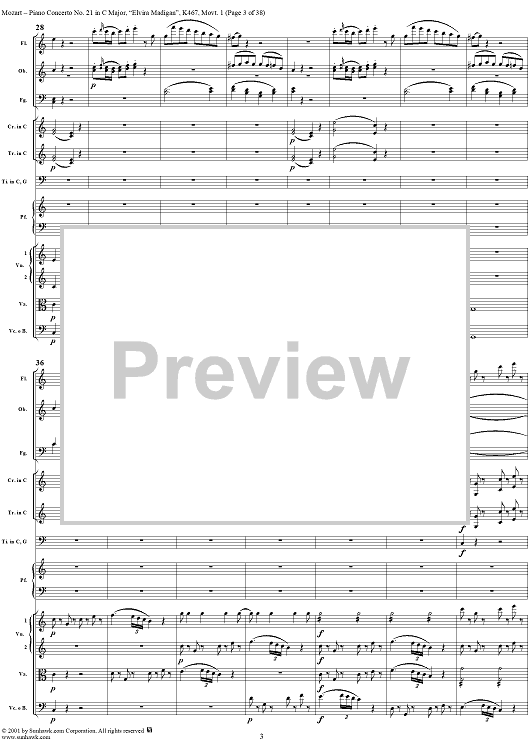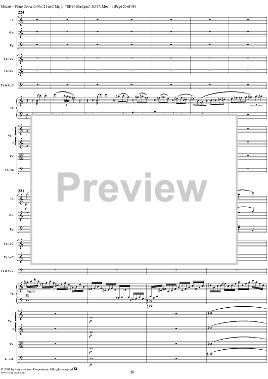 Digital Sheet Music for Piano Concerto No. 21 in C Major ("Elvira Madigan"), Movement 1 (K467) - Full Score by Wolfgang Amadeus Mozart scored for Piano and Orchestra; id:266233